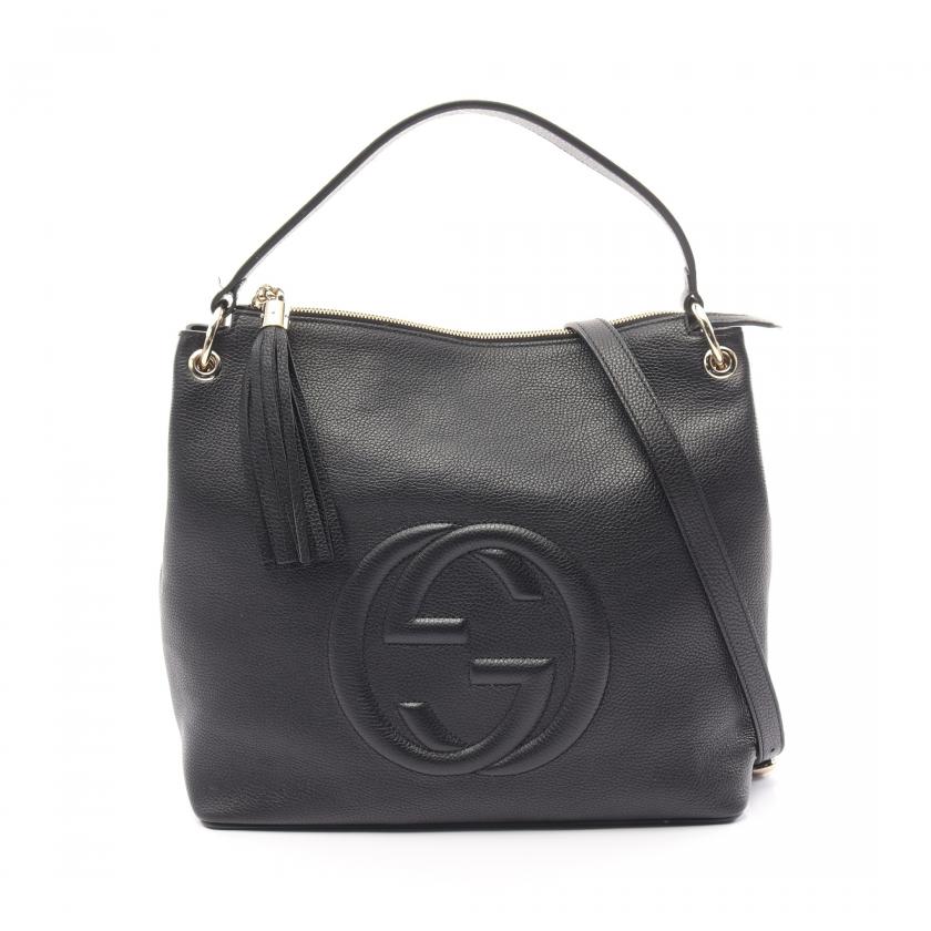 Gucci Soho Interlocking G Handbag Leather Black Tassel 2way