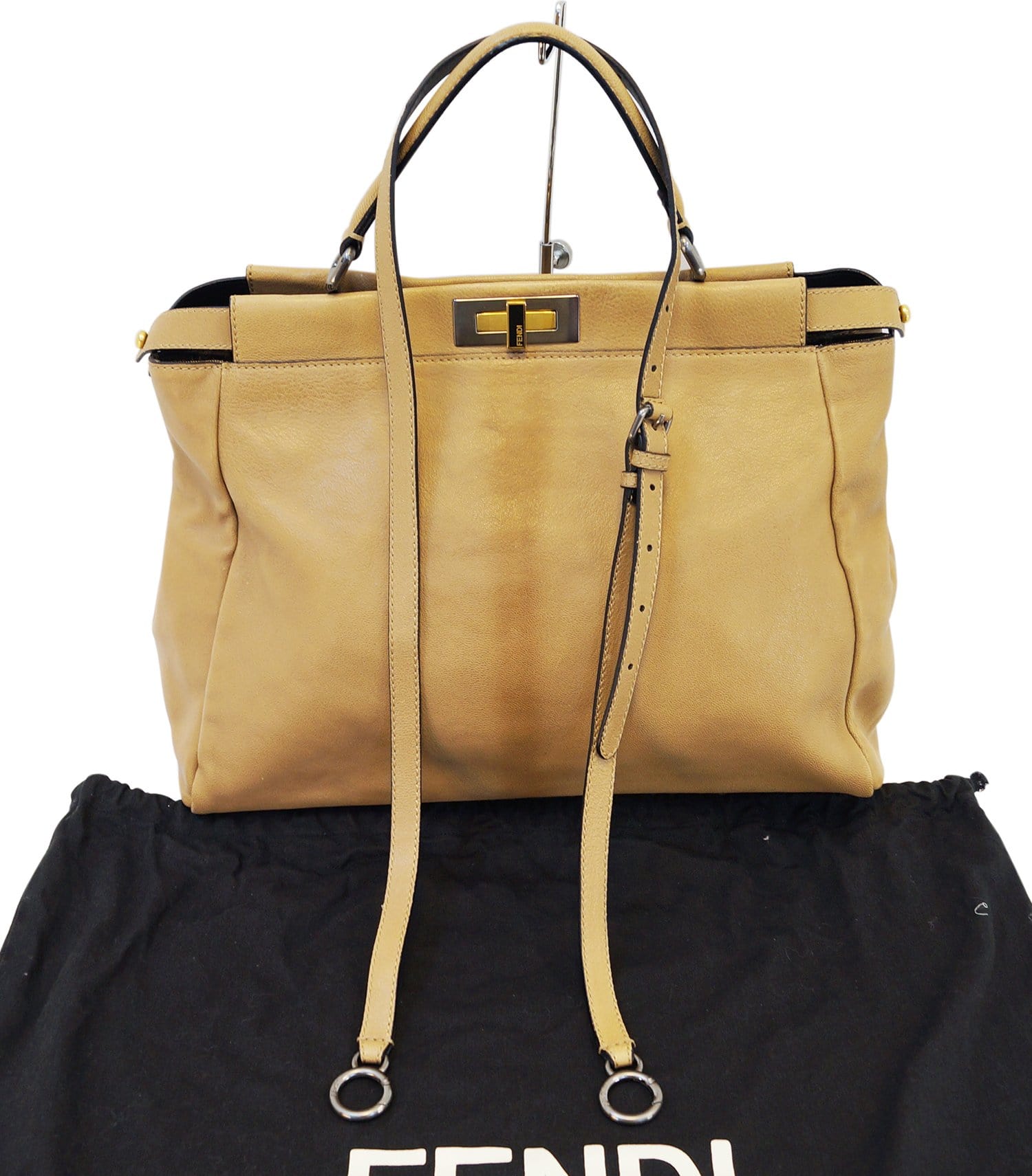 Don't miss out on your opportunity to own this gorgeous Fendi Beige Ombre Leather Peekaboo Large Satchel Bag. It features soft leather, in a gorgeous beige color with a ombre stripe going down the center on each side.