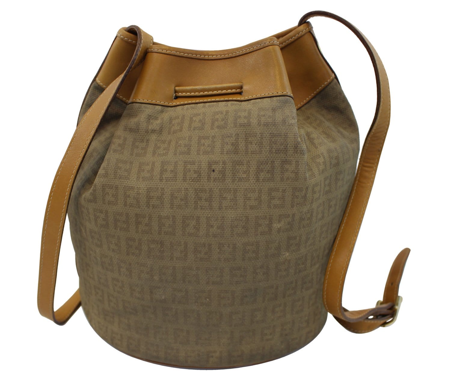 FENDI FF Leather Brown Bucket Shoulder Bag