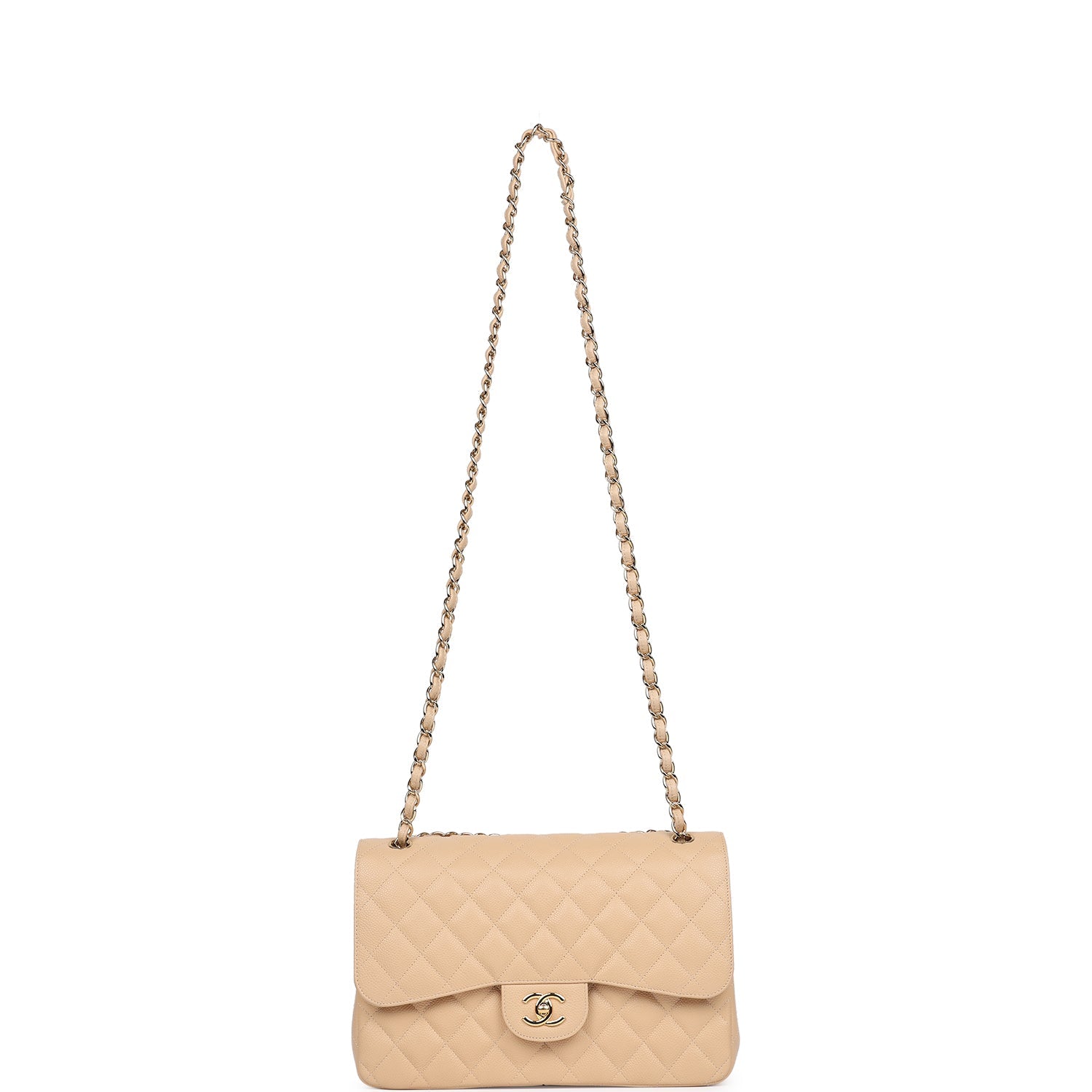 Chanel Jumbo Classic Double Flap Bag Beige Caviar Gold Hardware