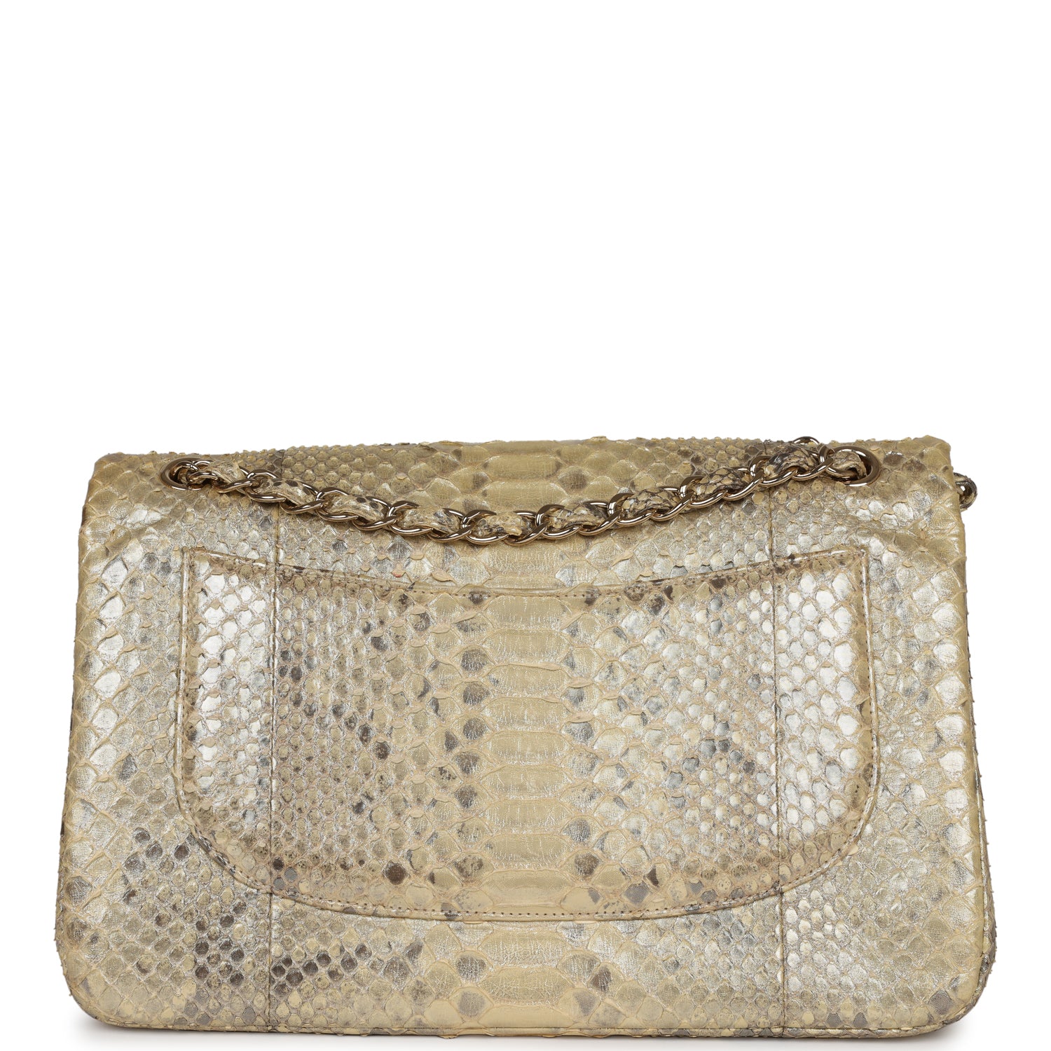 Pre-owned Chanel Jumbo Classic Double Flap Gold Metallic Python Gold Hardware