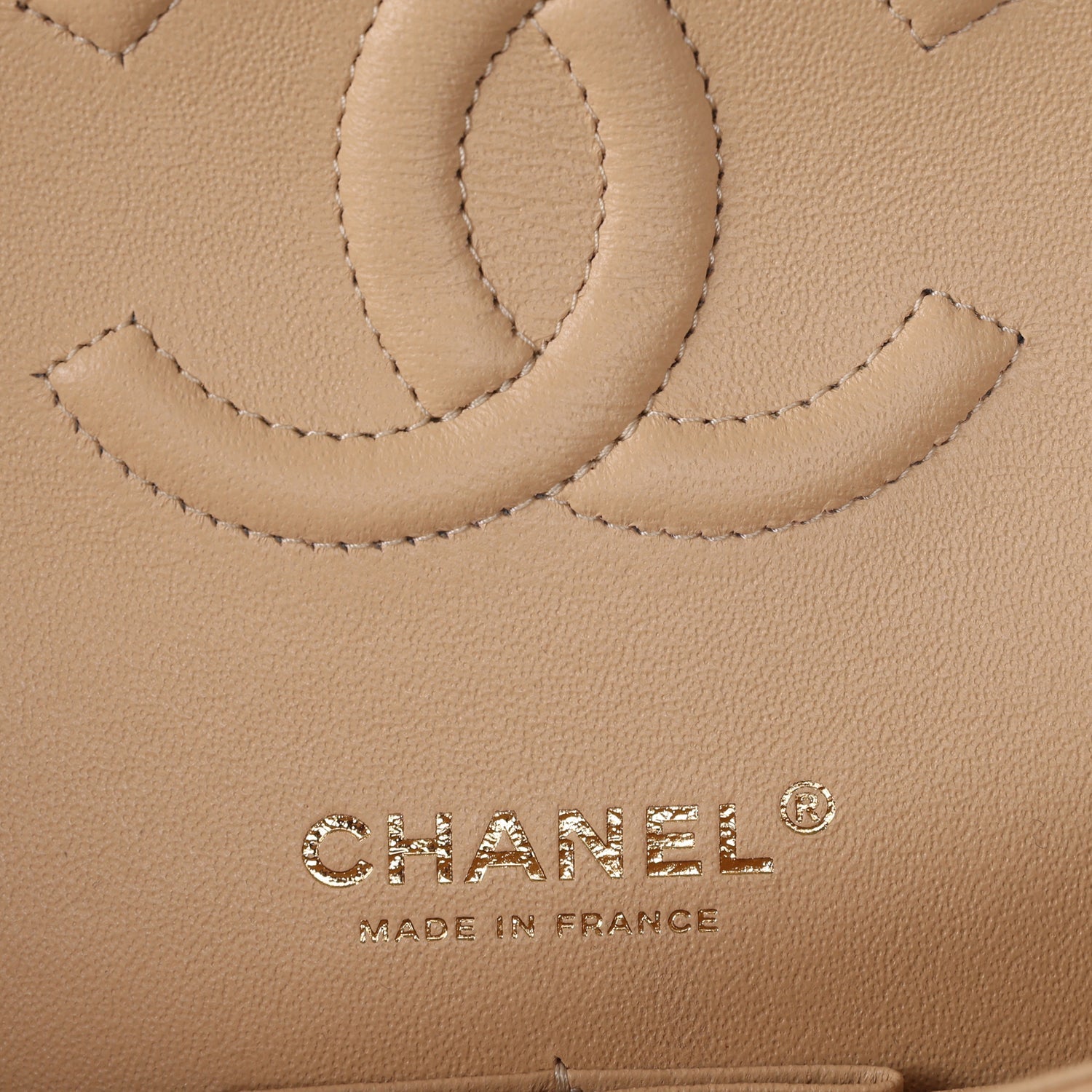 Chanel Medium Classic Double Flap Bag Beige Caviar Gold Hardware