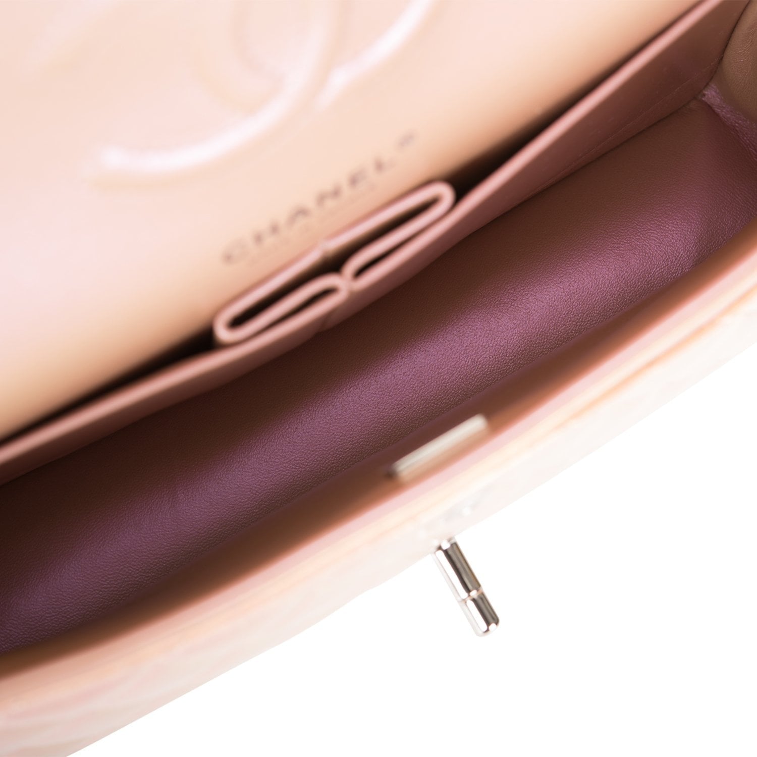 Chanel Medium Classic Double Flap Bag Pink Iridescent Lambskin Silver Hardware