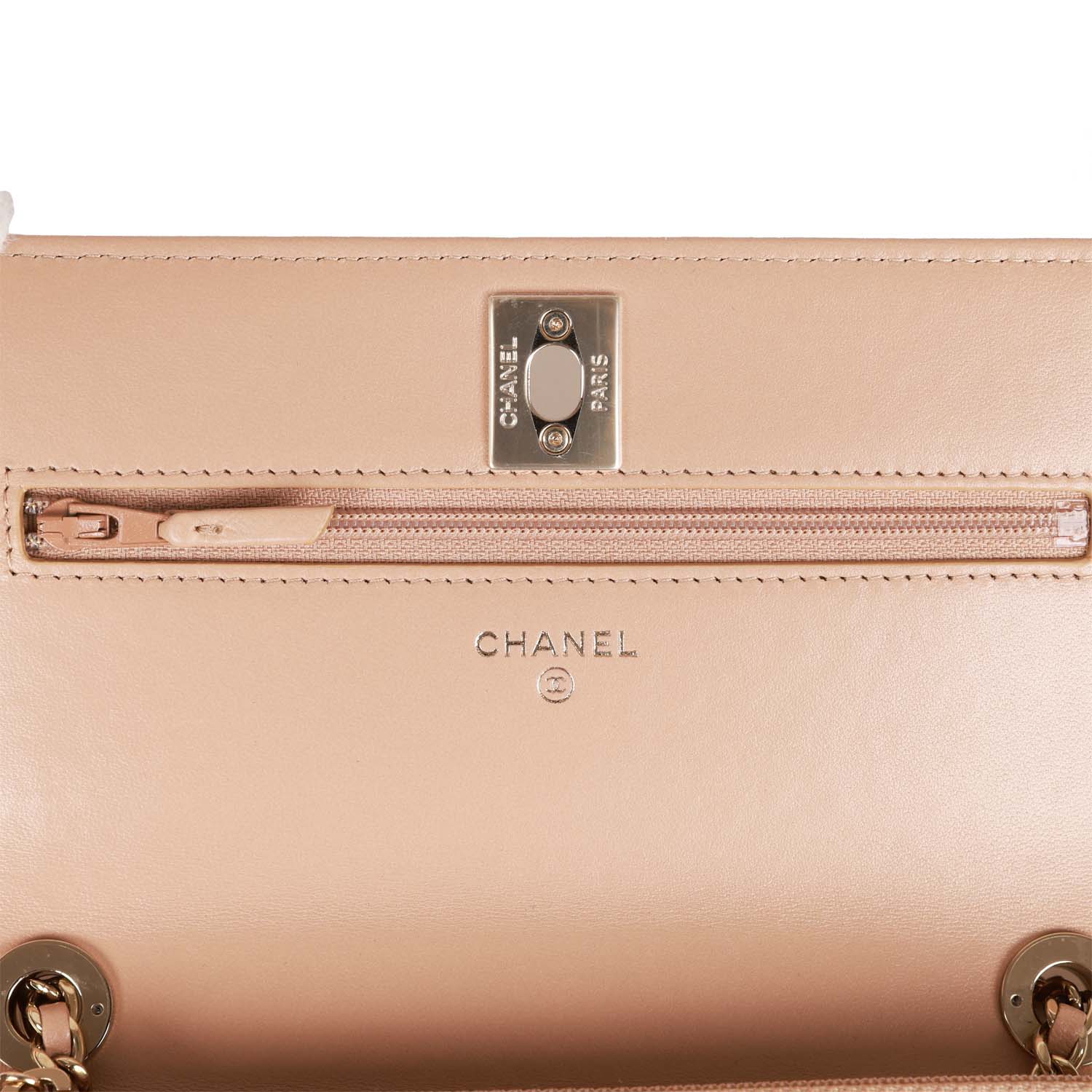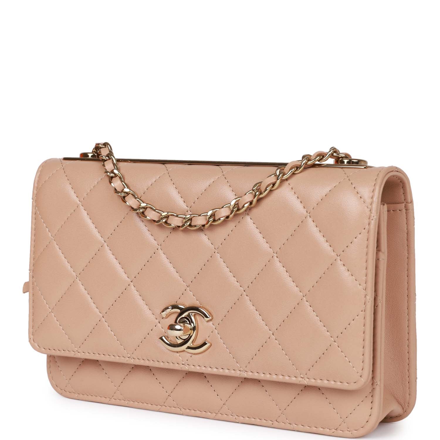 Chanel Trendy CC Wallet on Chain WOC Beige Lambskin Gold Hardware