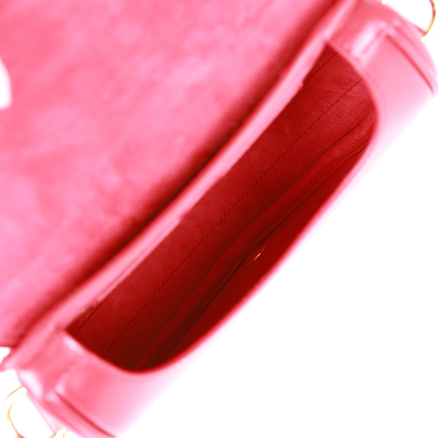 The interior is lined in red leather and has one pocket on the rear wall.