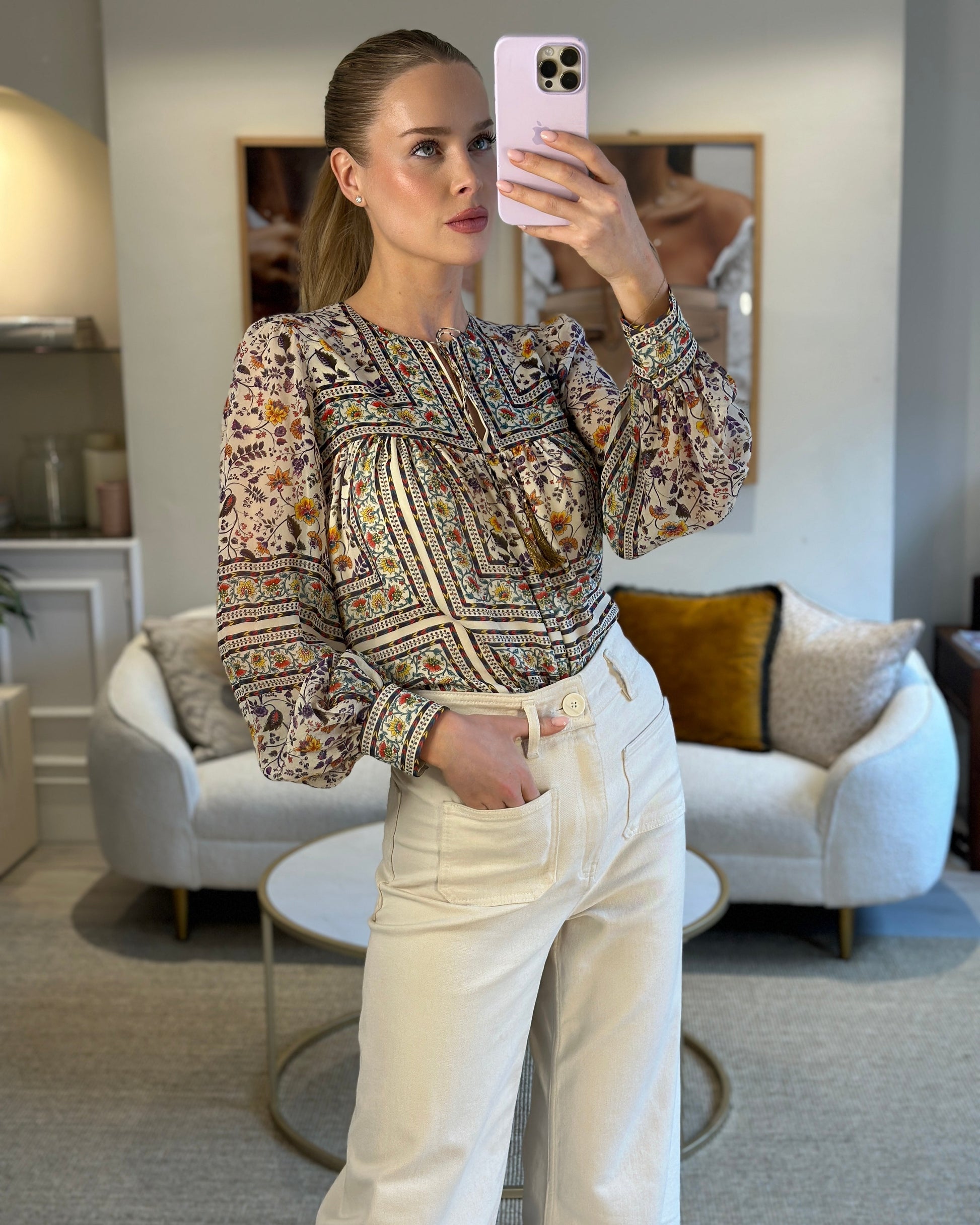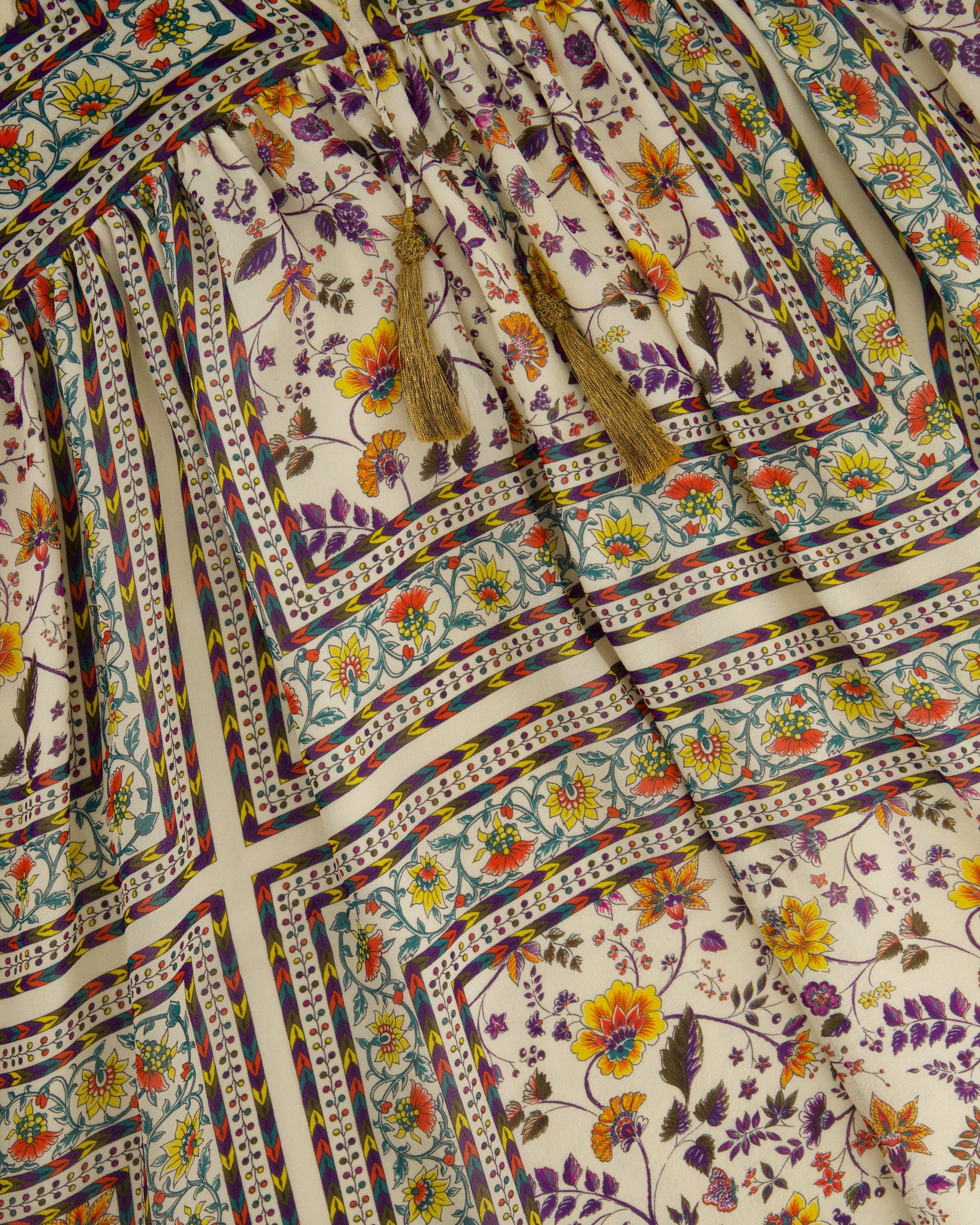 Saint Laurent Cream Silk Tunic Dress with Multi-Colour Floral Pattern Detail Size FR 36 (UK 8)