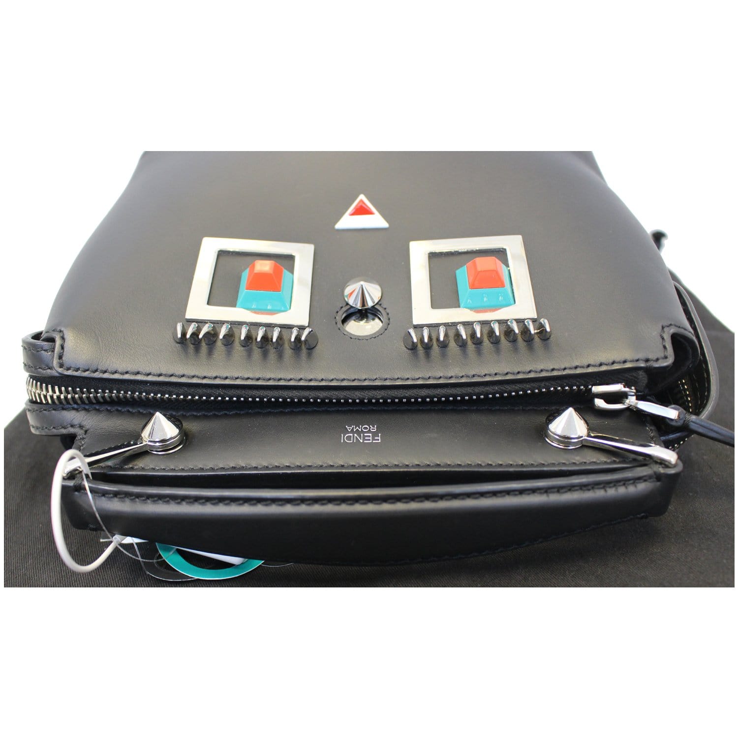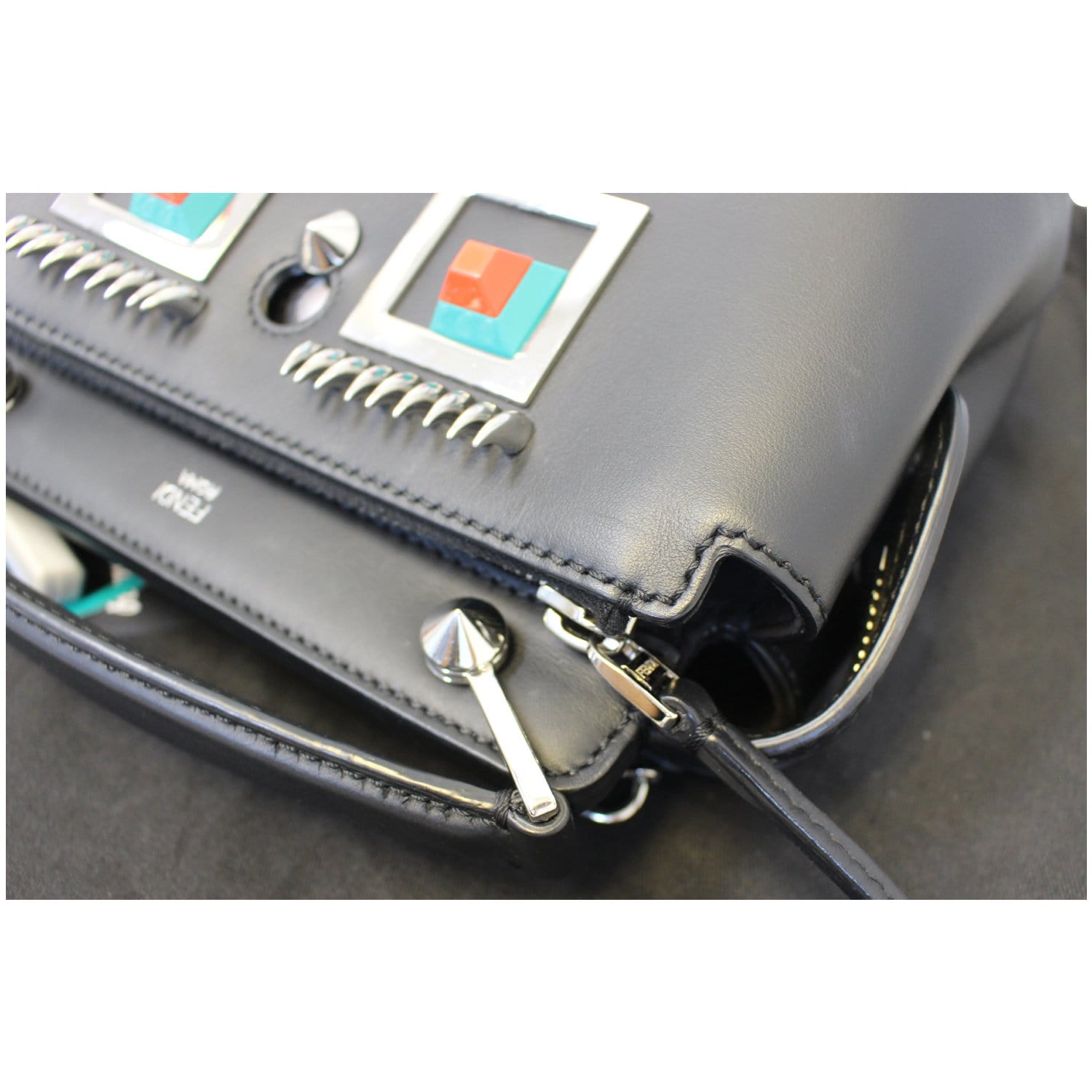 FENDI DotCom Faces Click Top Handle Embellished Leather Shoulder Handbag