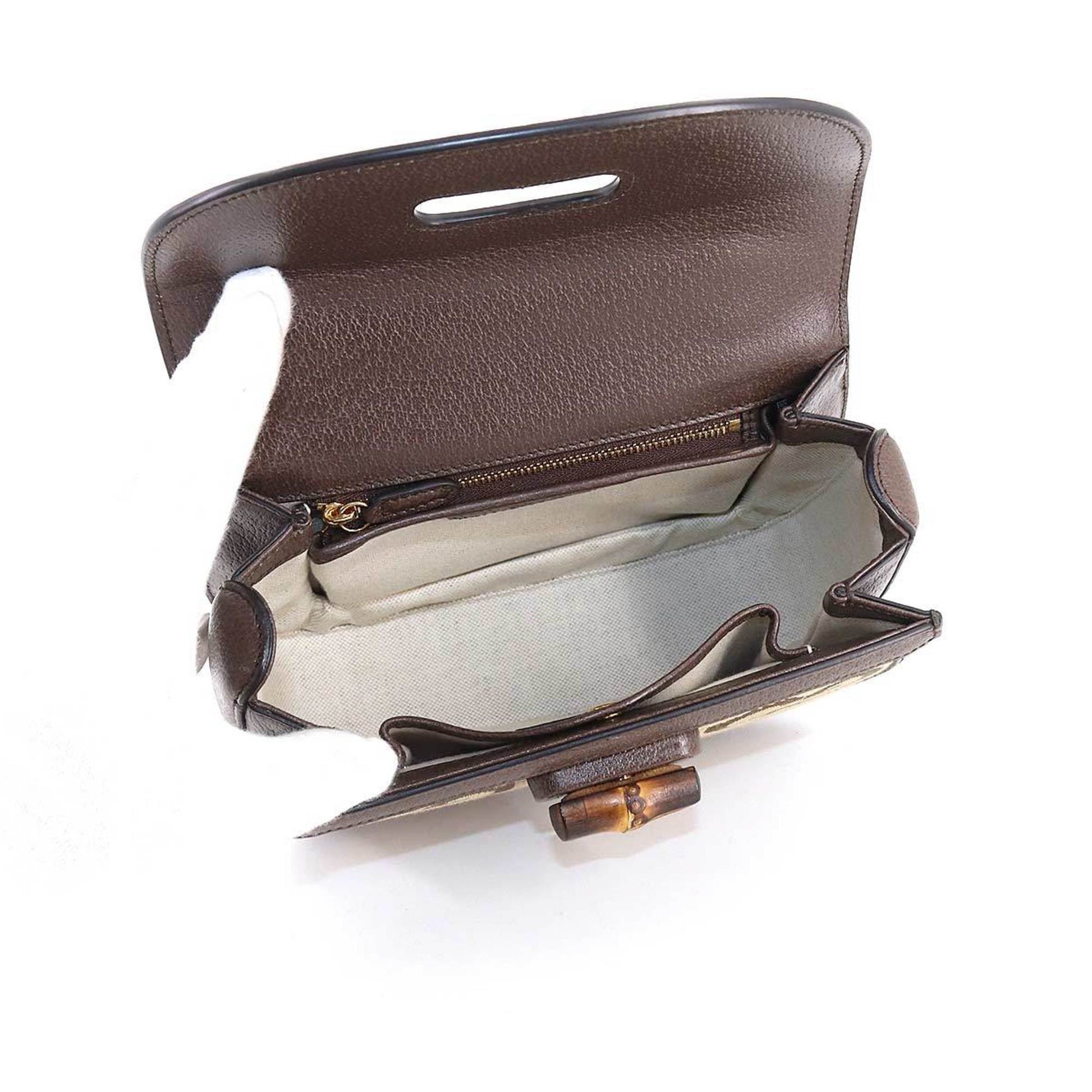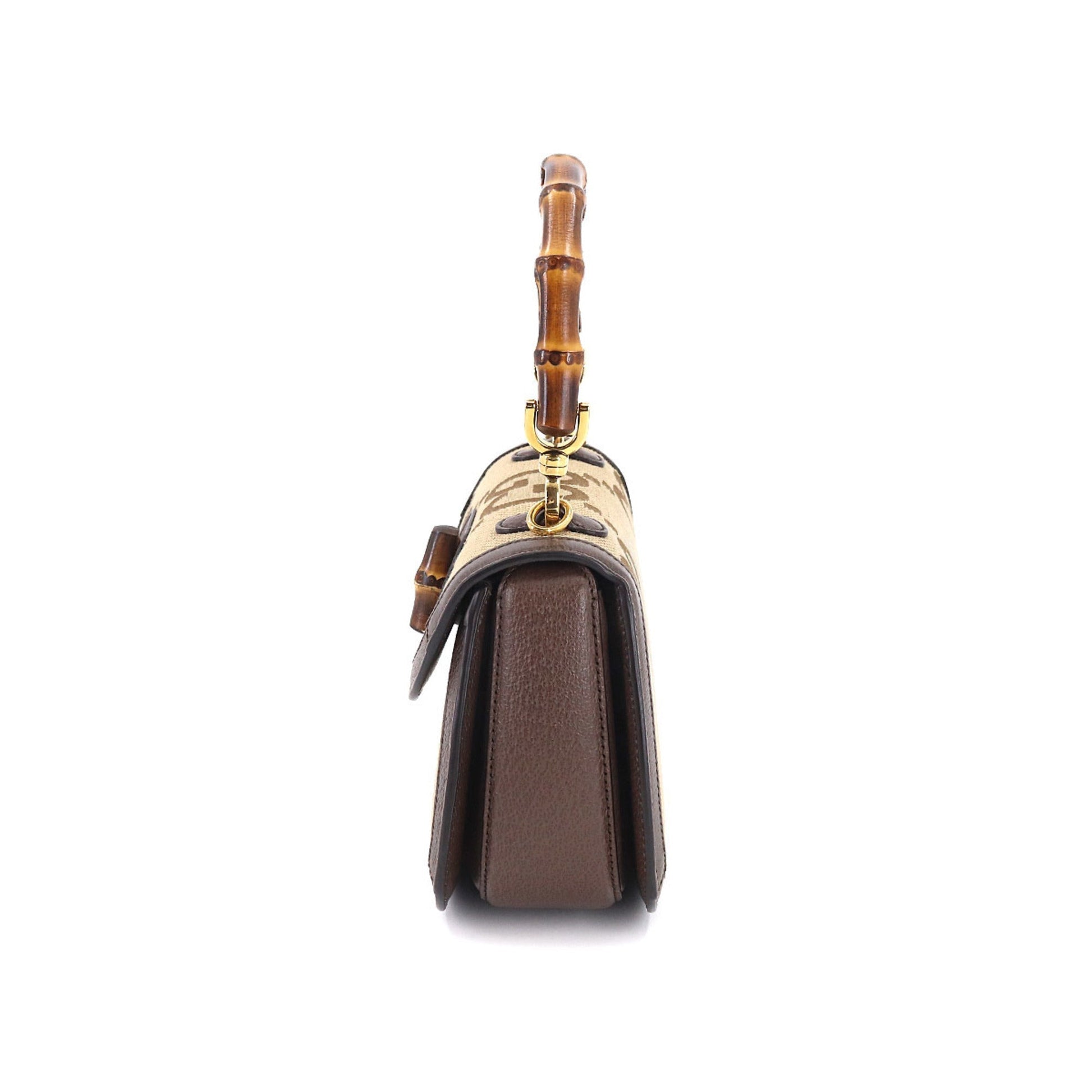 Gucci Bamboo 1947 Small Jumbo GG Hand Shoulder Bag Canvas Leather Camel Ebony 675797