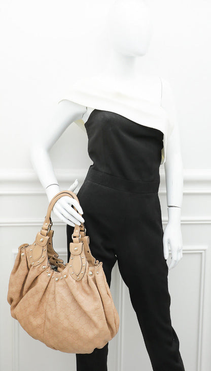 Gucci Beige GG Guccissima Studded Pelham Bag