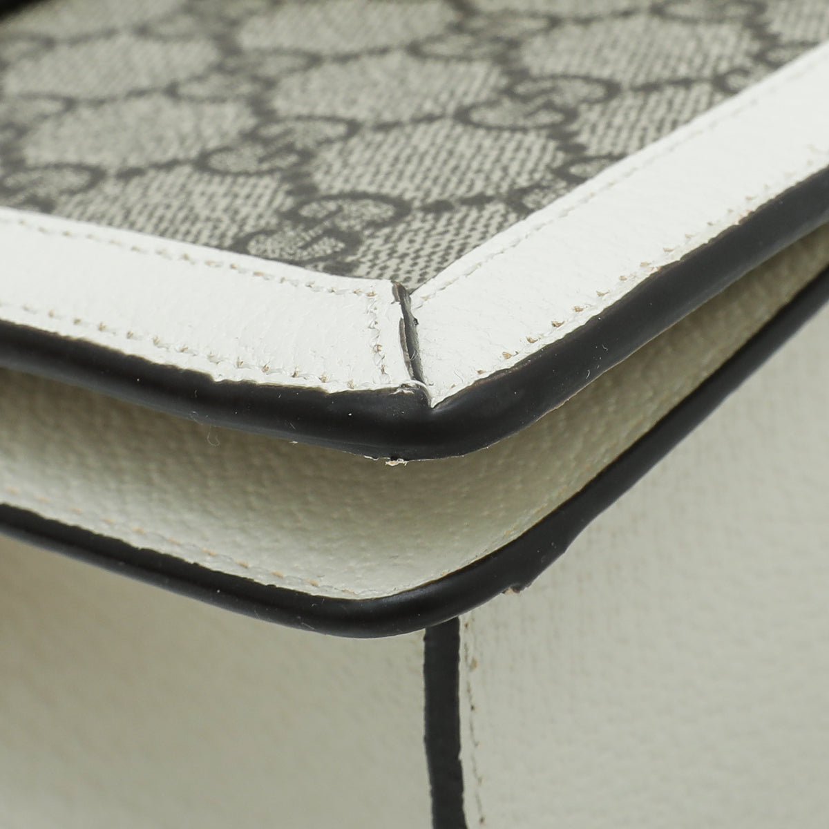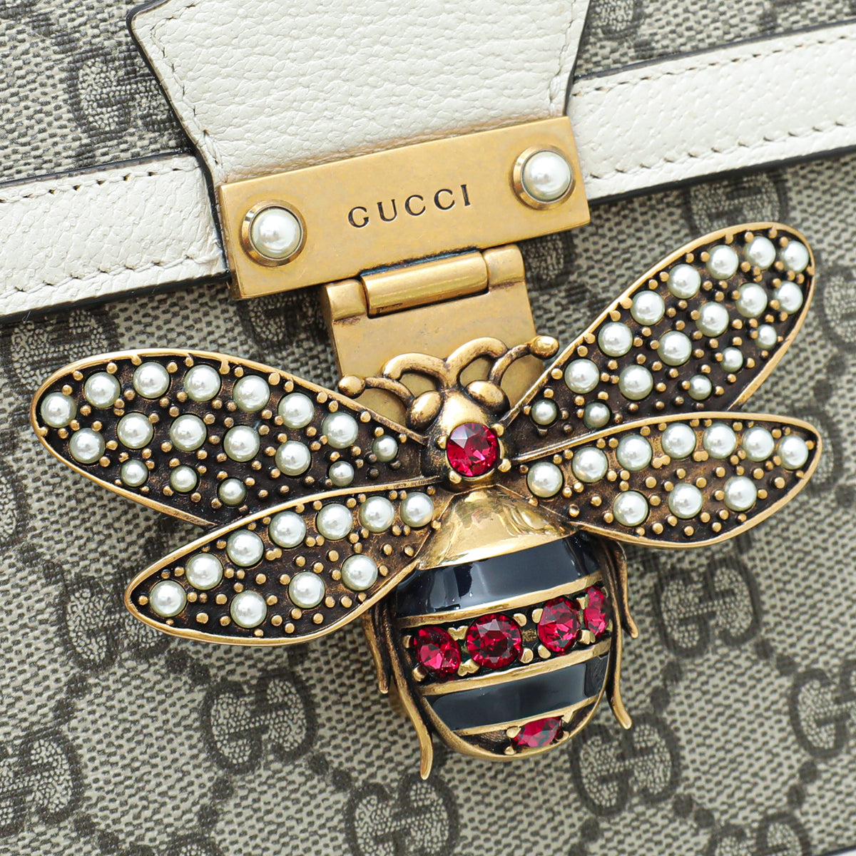 - Material: Ebony GG Supreme Canvas with White Leather Trim and Green/Red Web and Pearl Bee Motif