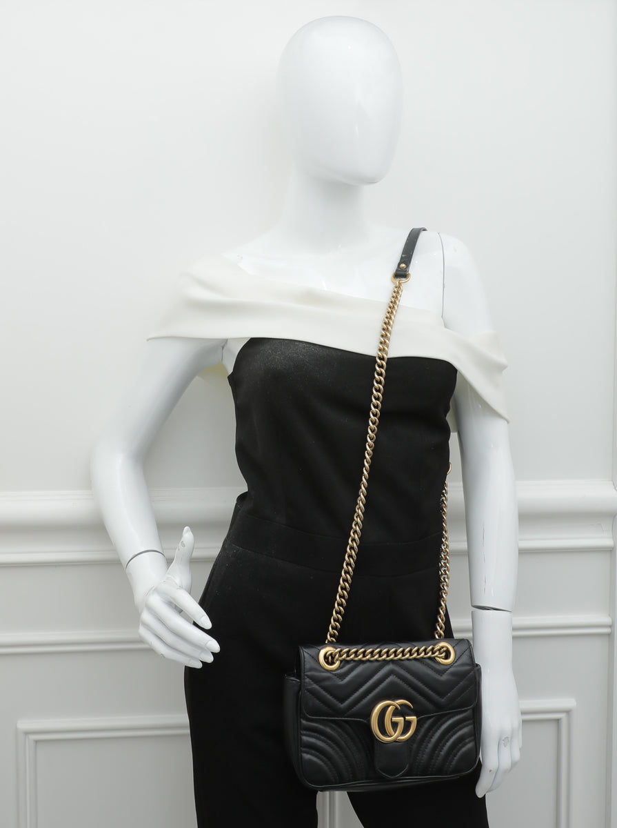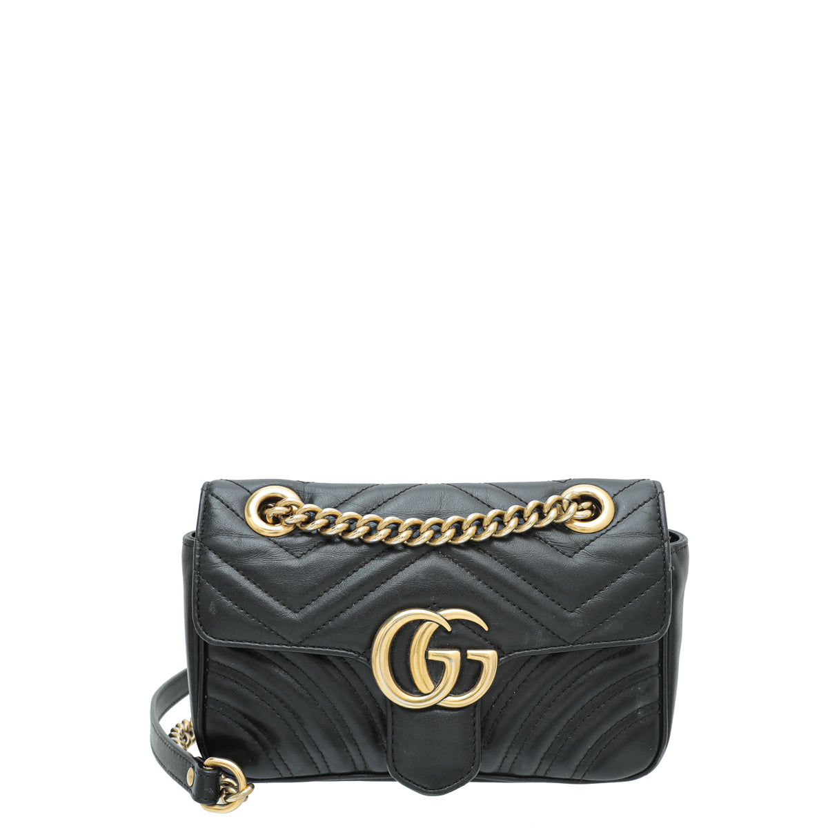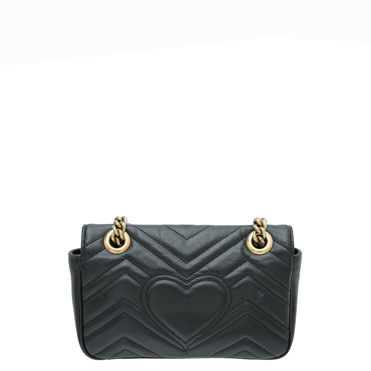 - Material: Black Matelassé Chevron Leather with Heart on The Back and Double G