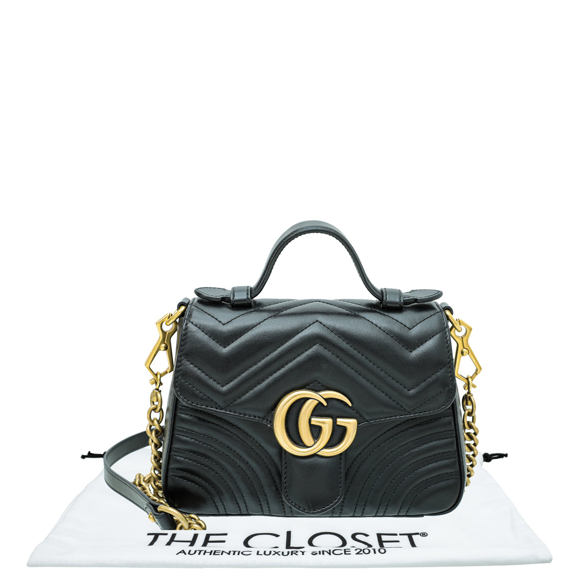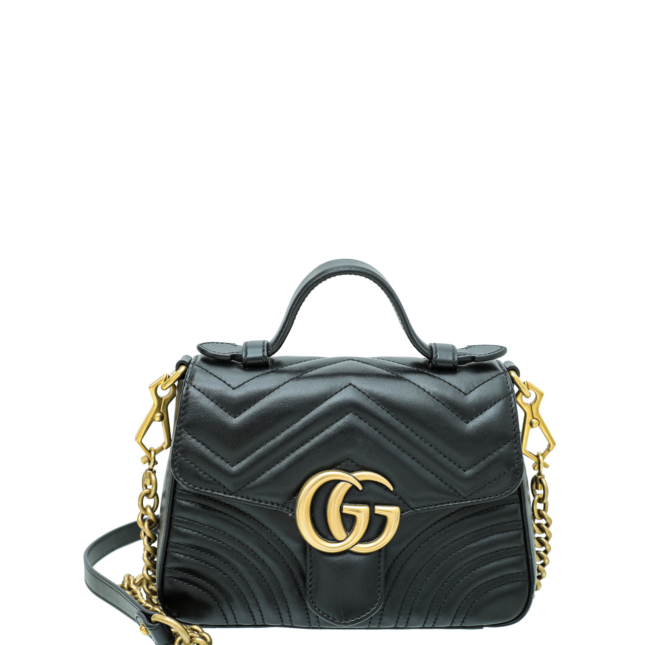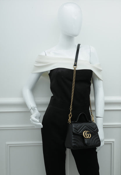 Gucci Black GG Marmont Top Handle Chain Mini Bag