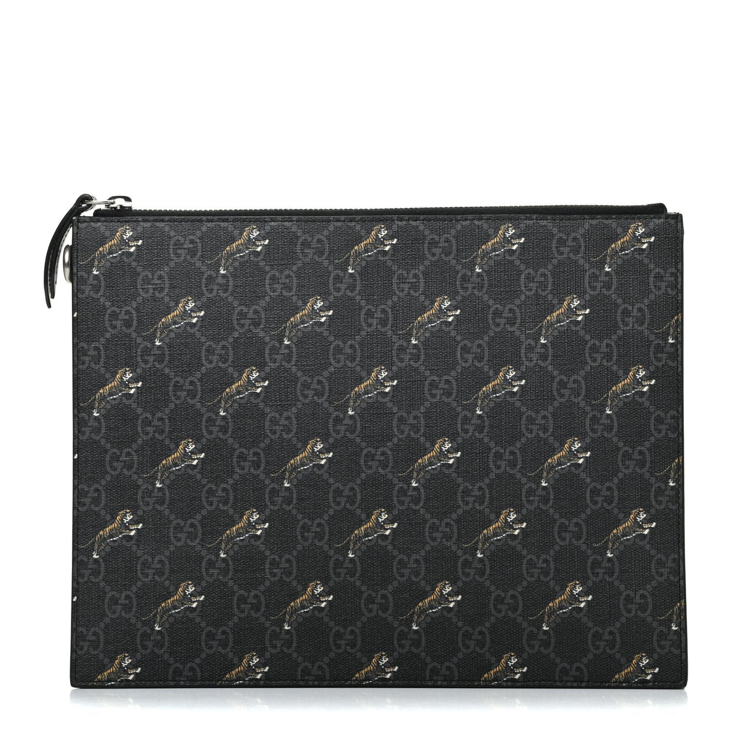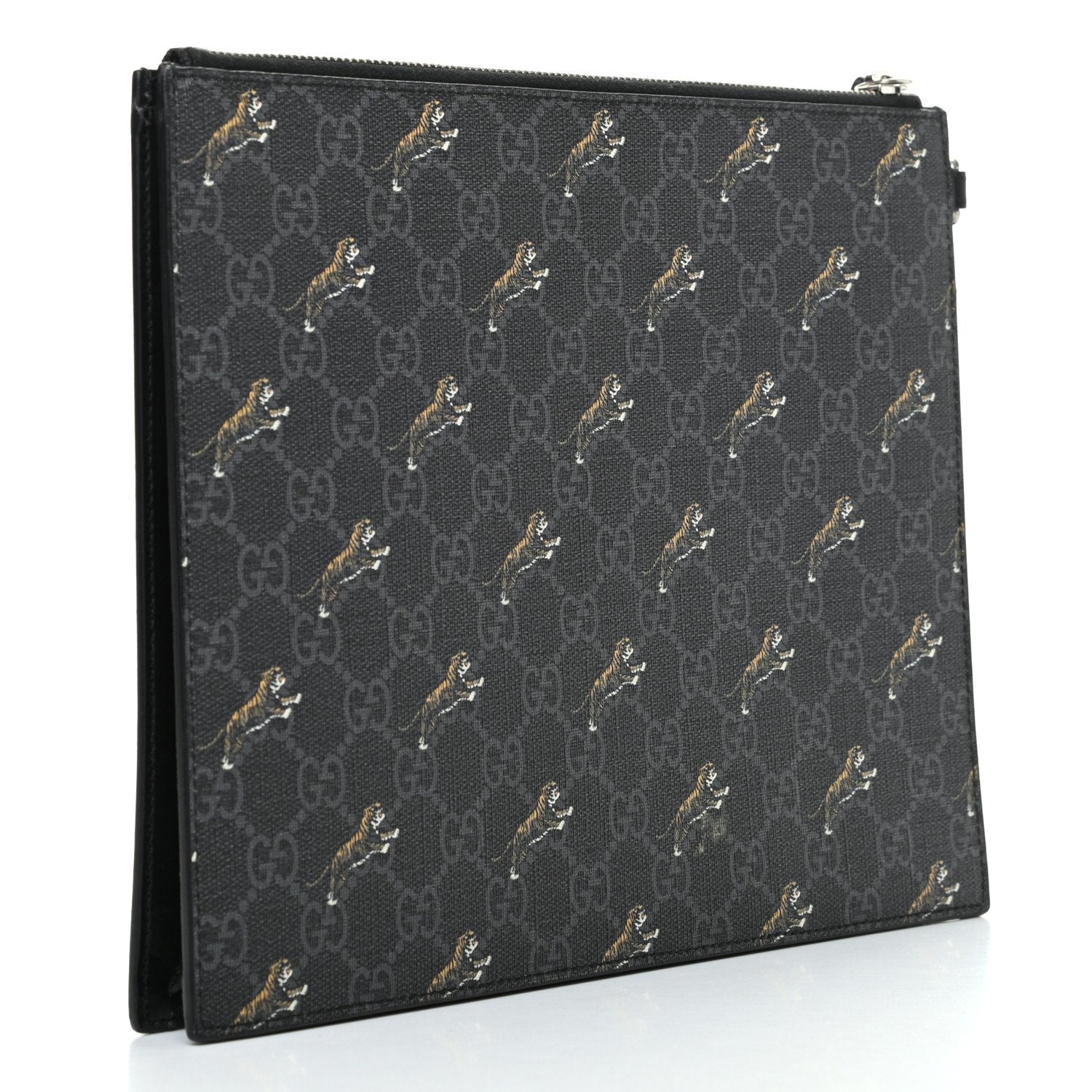 Gucci Black GG Supreme Monogram Tiger Print Clutch Bag 575136