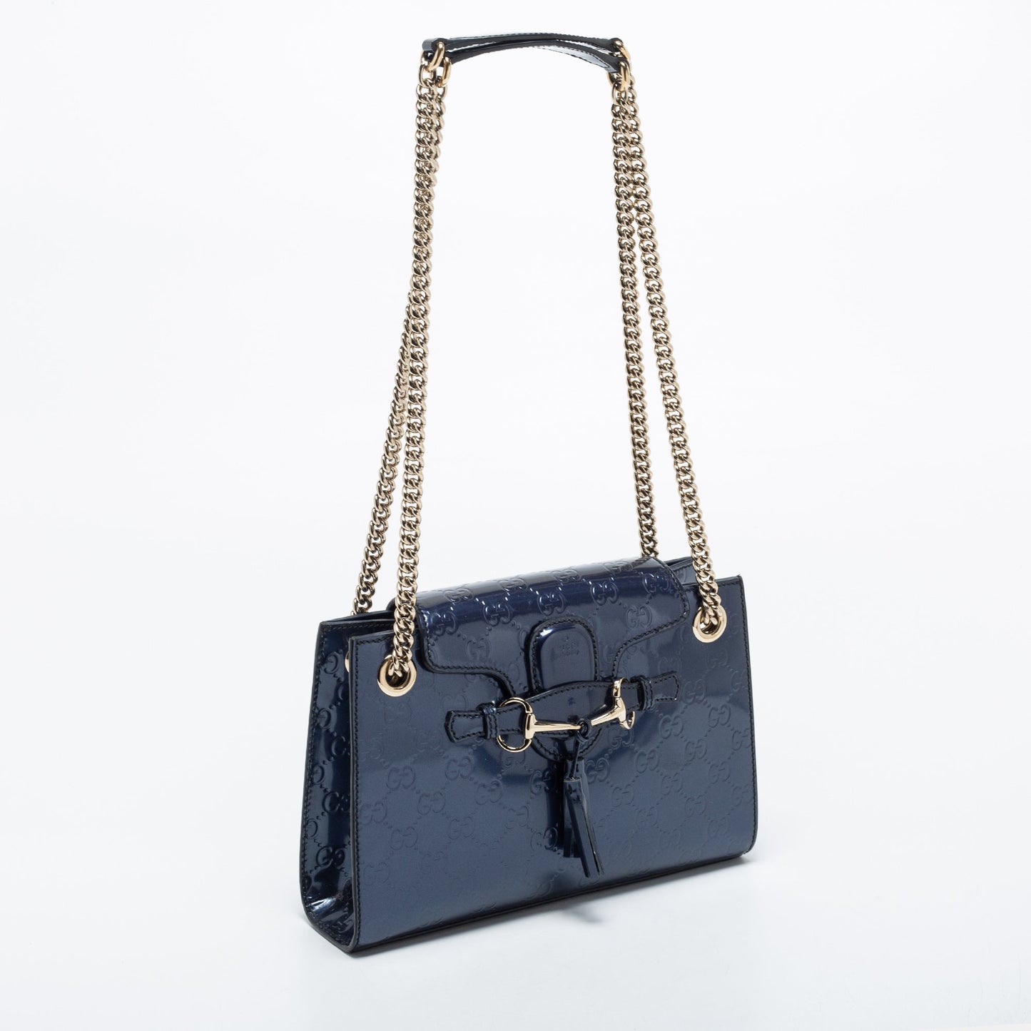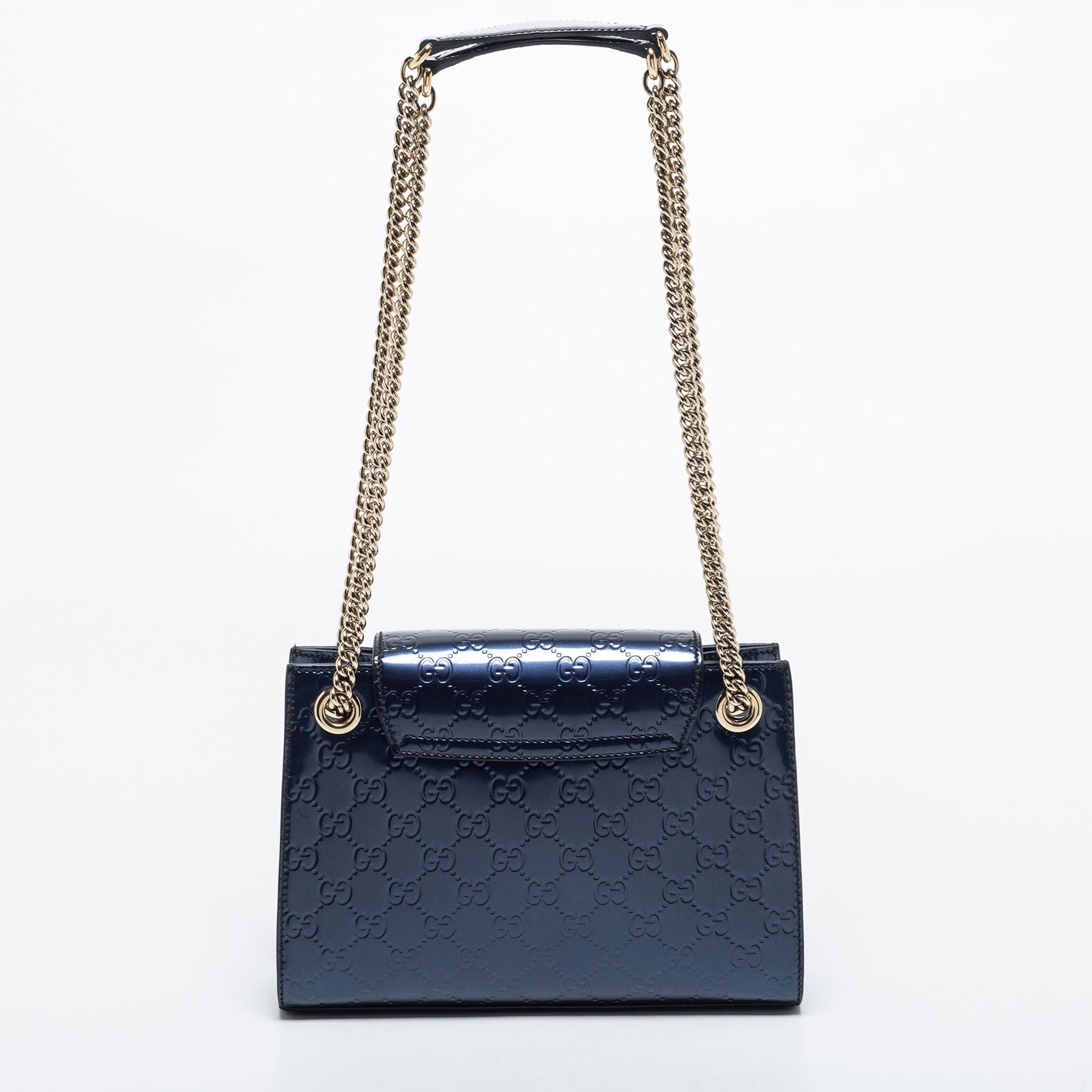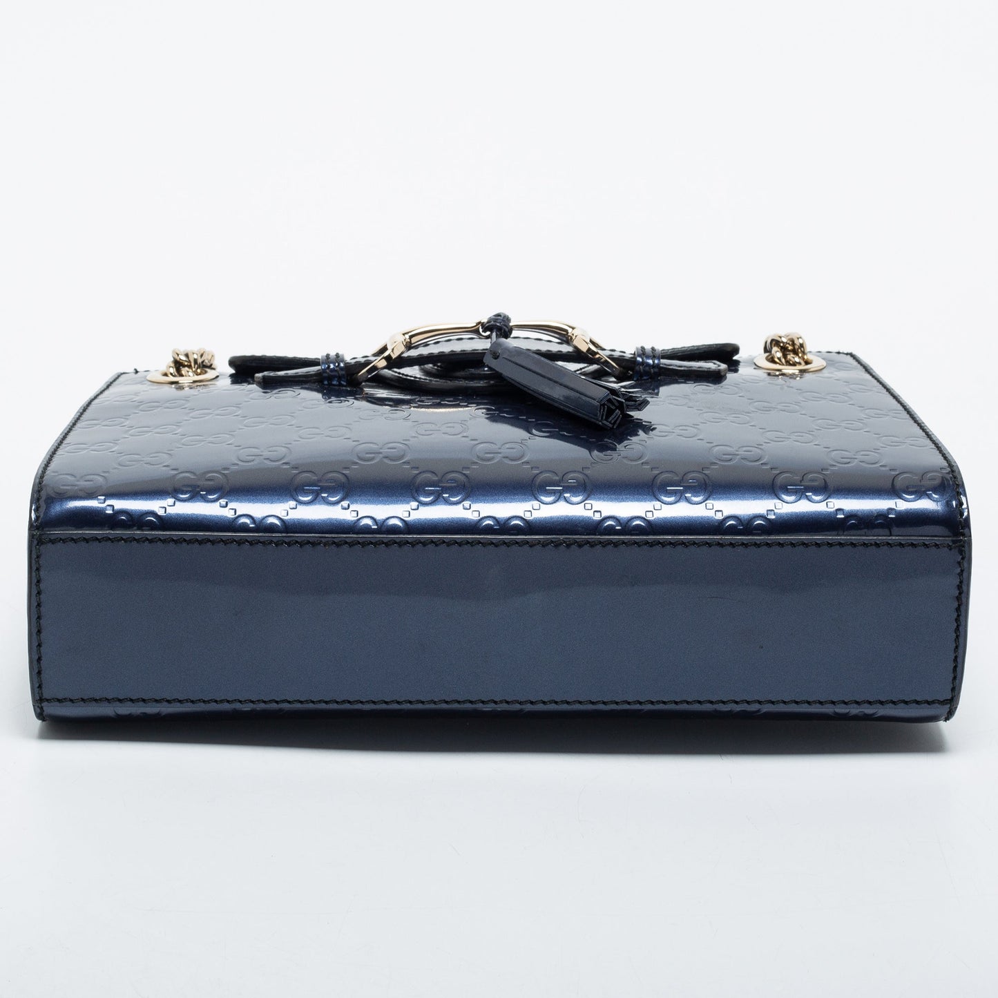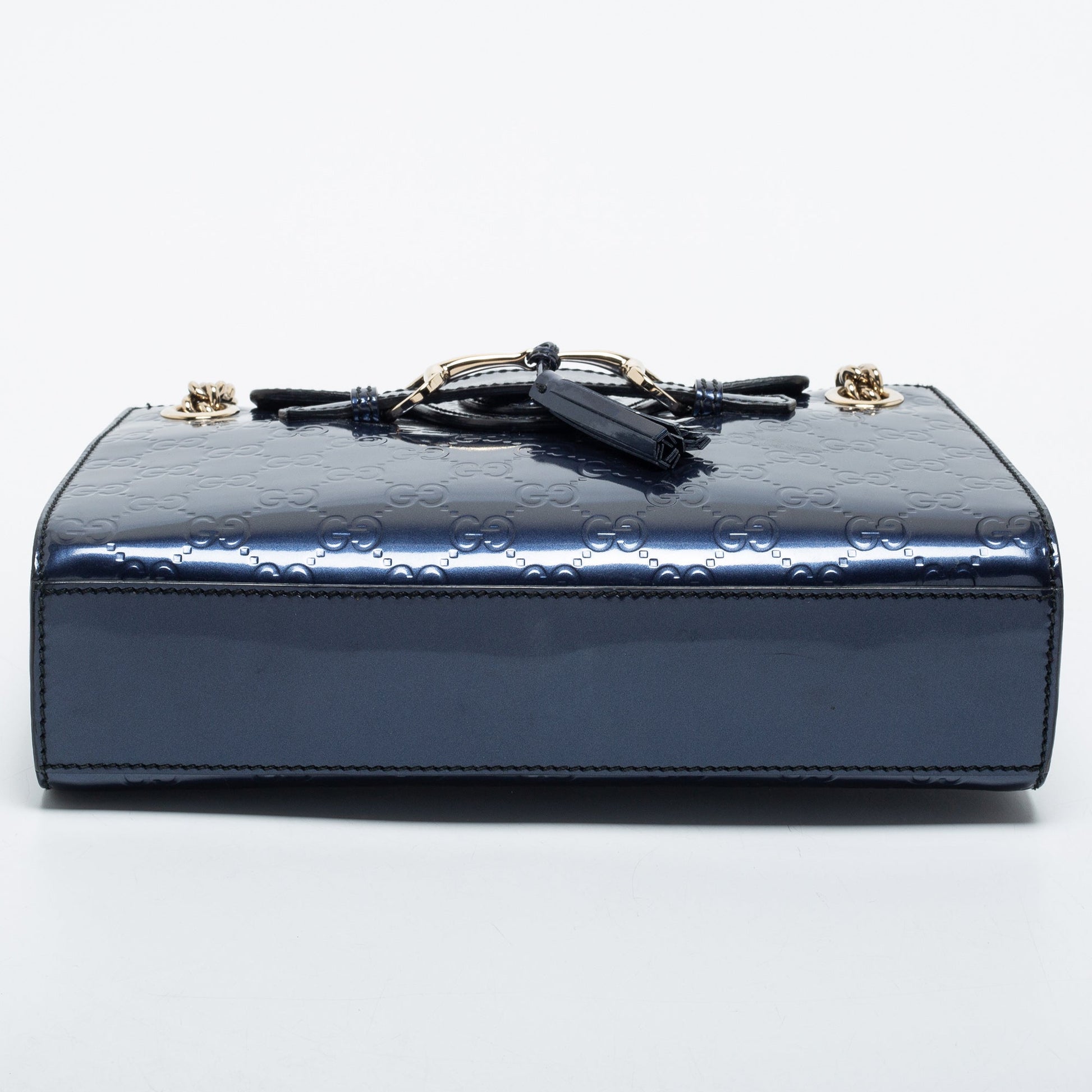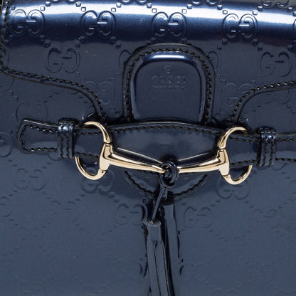 Gucci Blue Guccissima Patent Leather Small Emily Chain Shoulder Bag