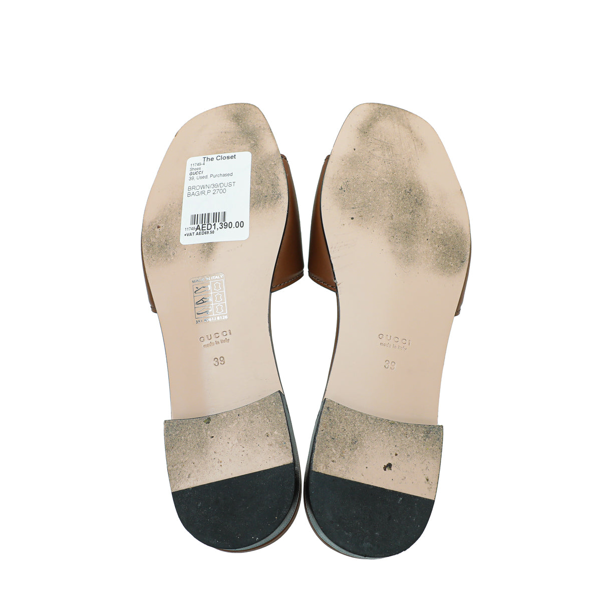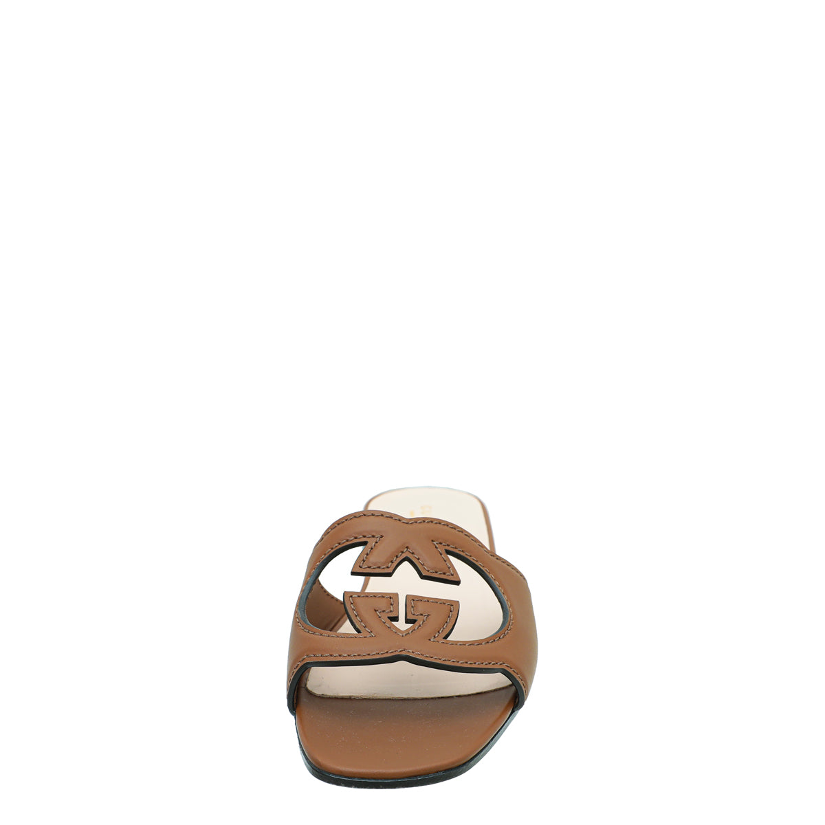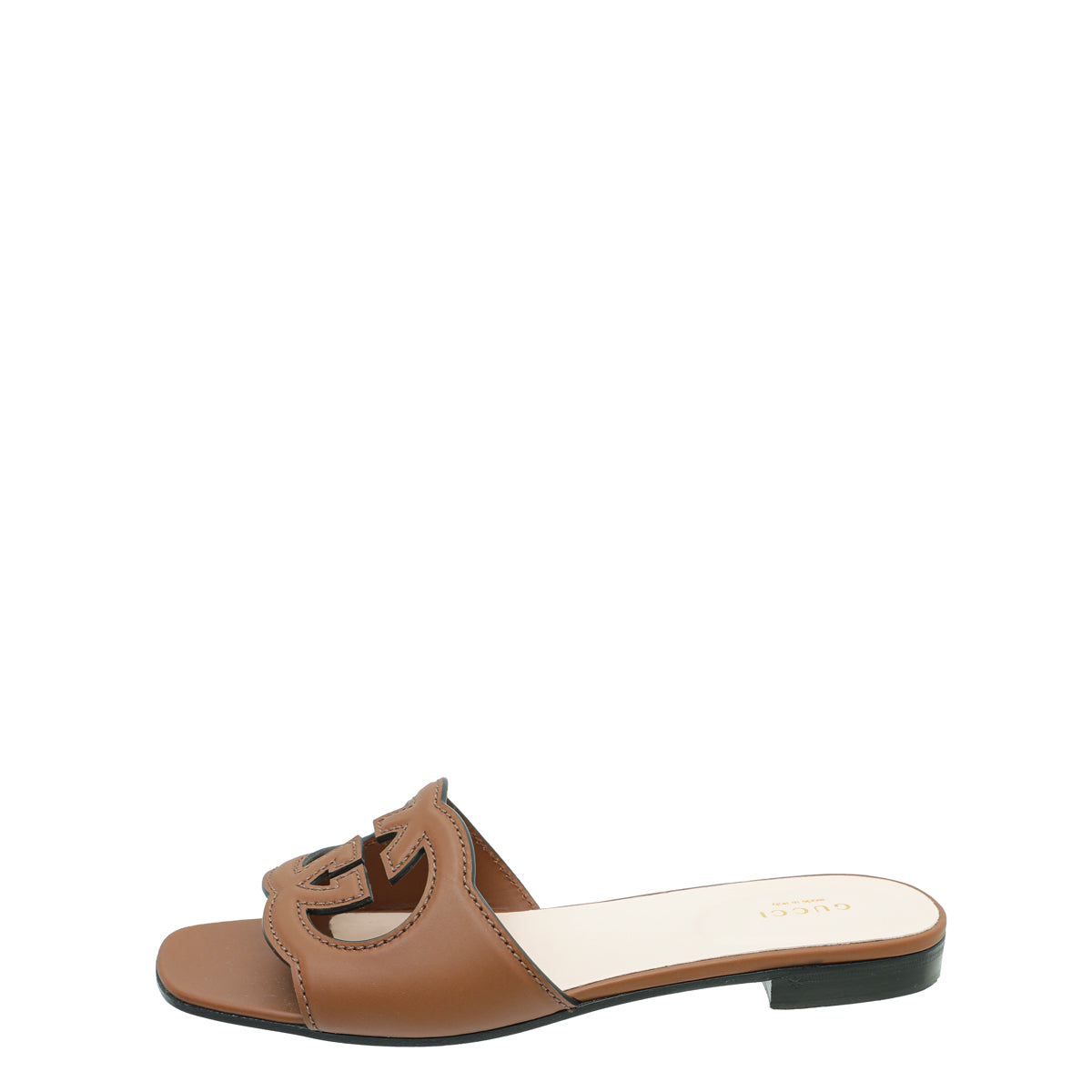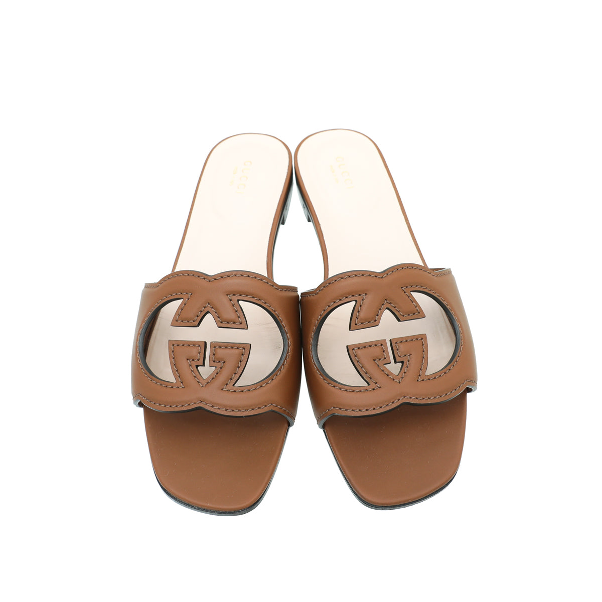 Gucci Brown Interlocking G Cut Out Slide Sandal 39