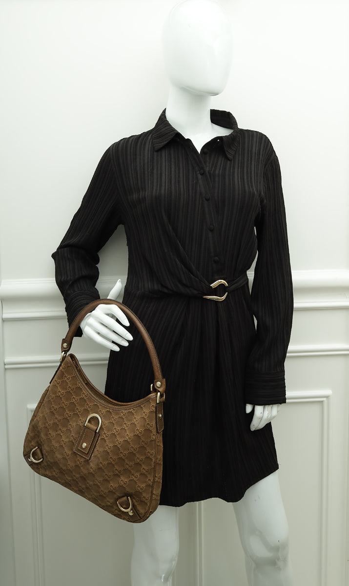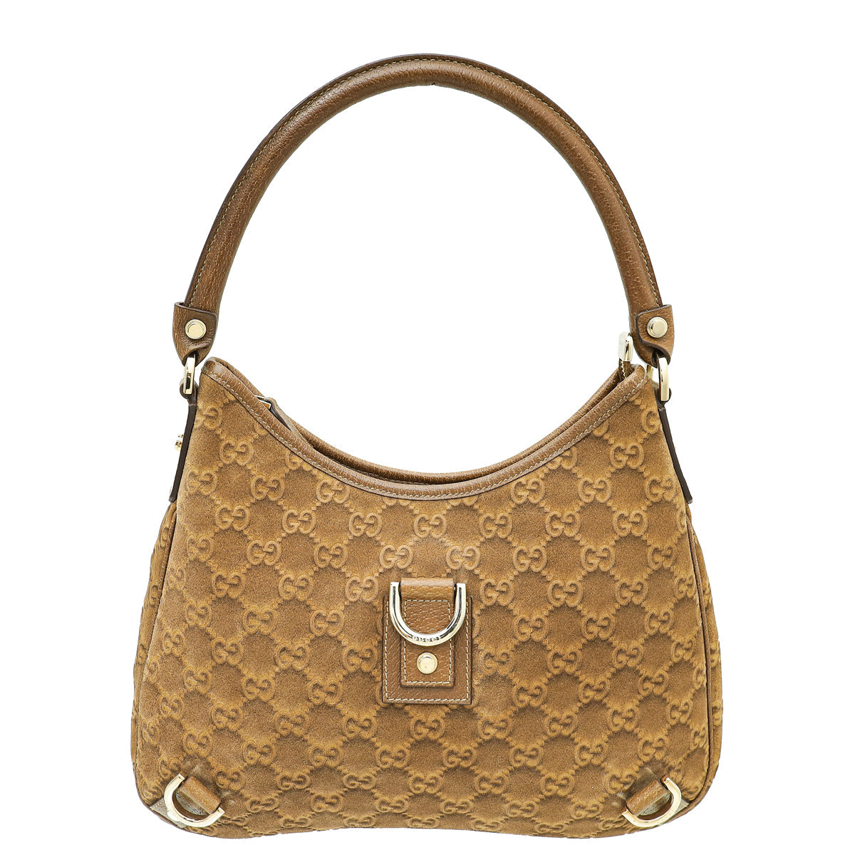 Gucci Brown Suede Guccissima Abbey D Ring Hobo Medium Bag