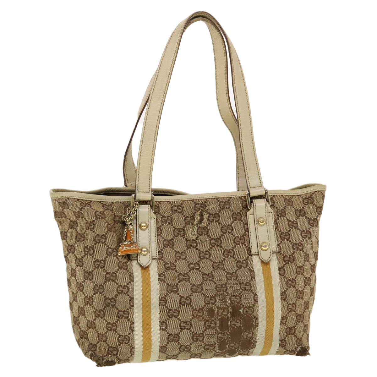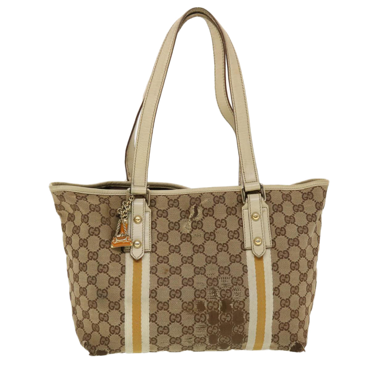 GUCCI GG Canvas Sherry Line Tote Bag Beige Orange yellow 137896 ti1129