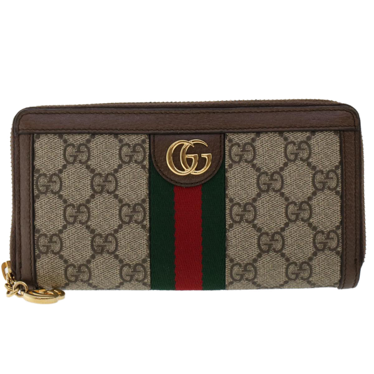 GUCCI GG Canvas Web Sherry Line Ophidia Long Wallet Beige Red 523154 49471