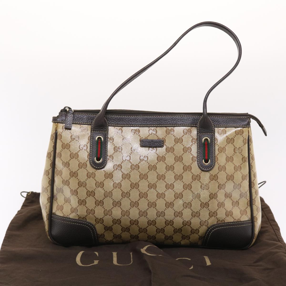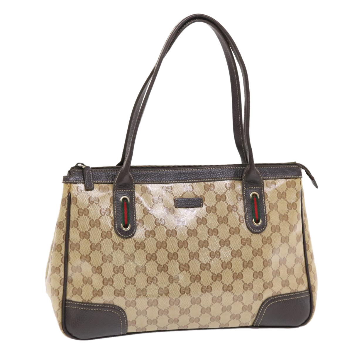 GUCCI GG Crystal Canvas Web Sherry Line Shoulder Bag Beige 293599 hk775
