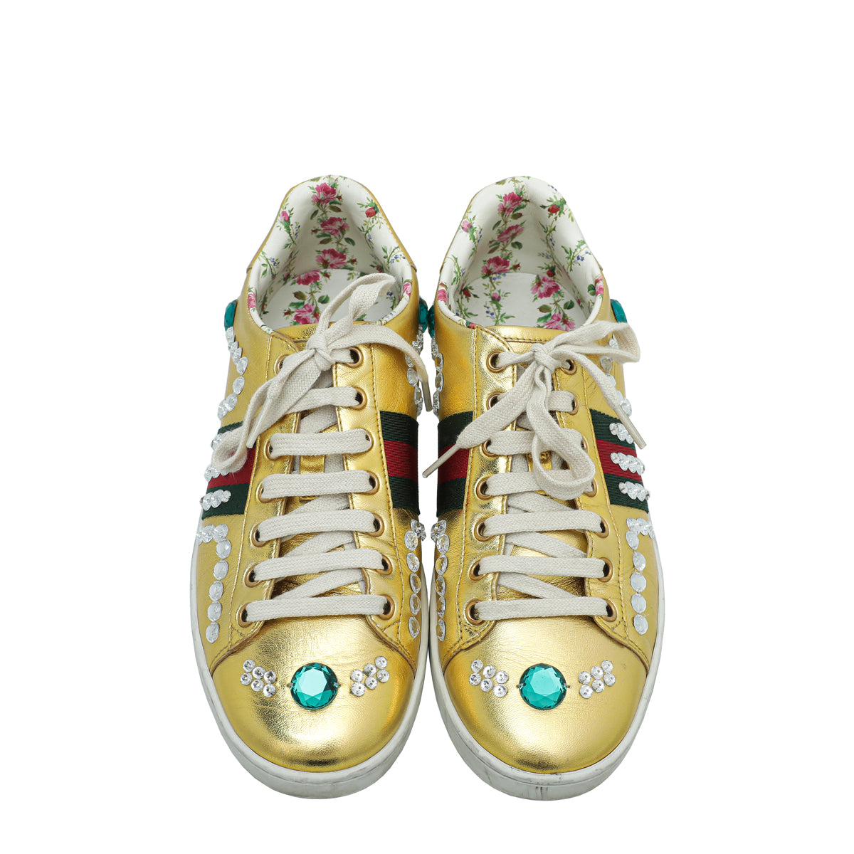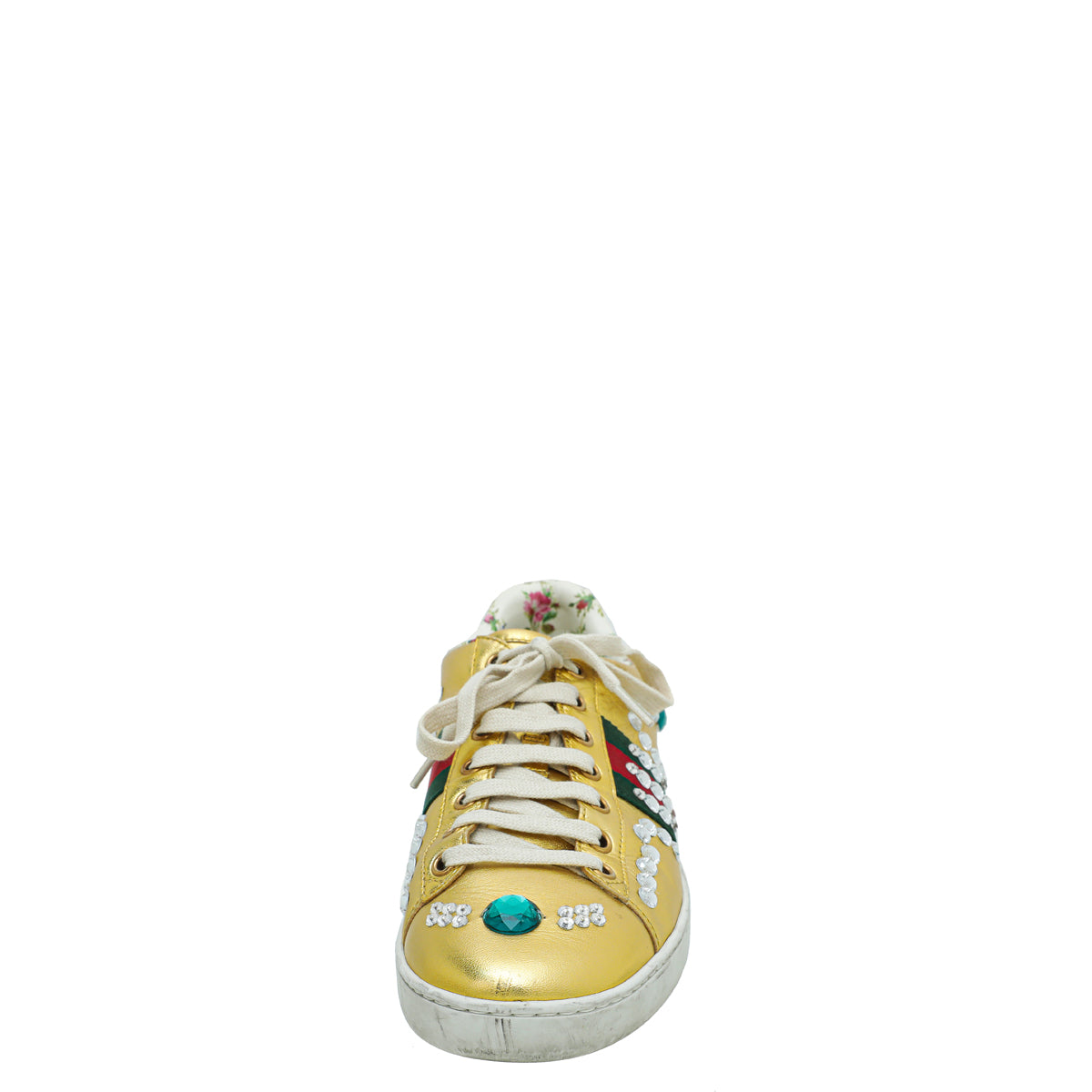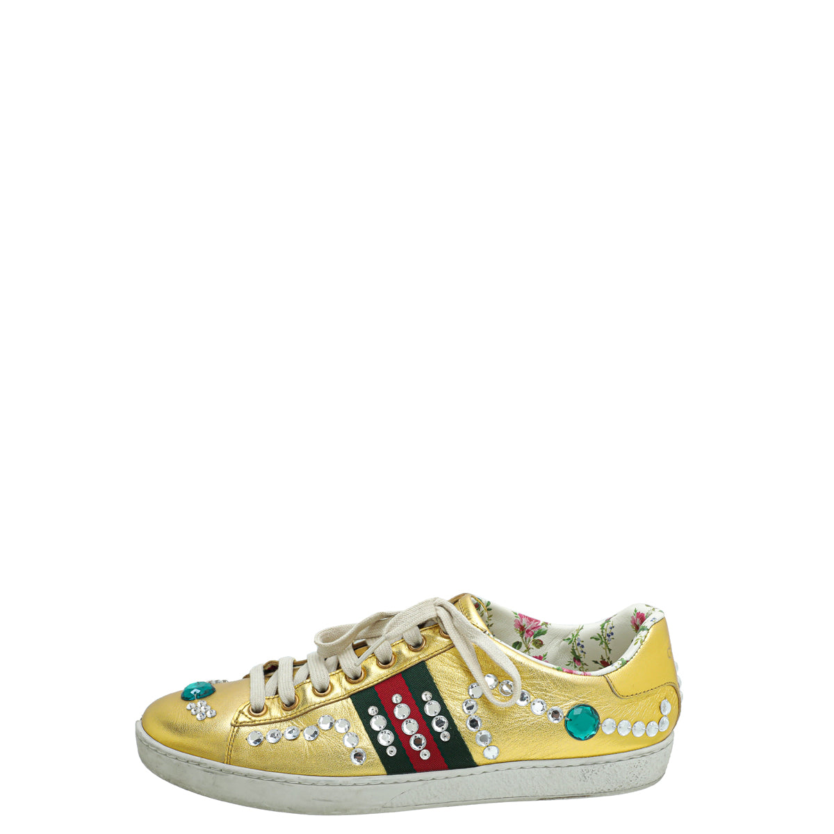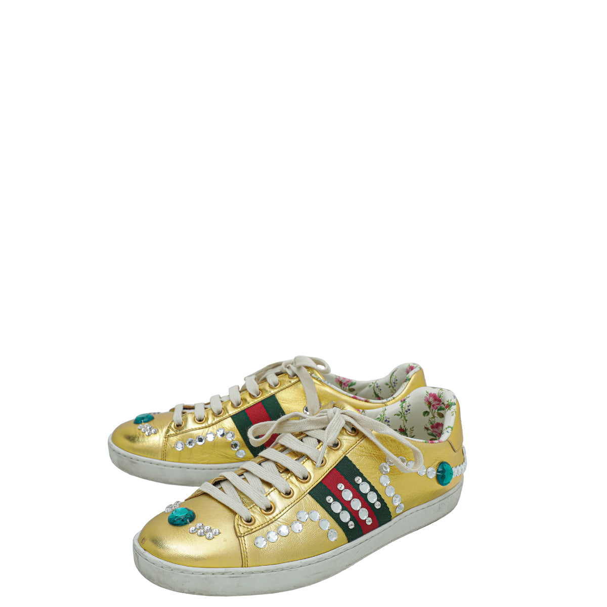 Gucci Gold Baskets Ace Strass Sneaker 39
