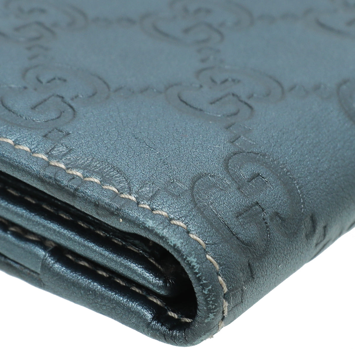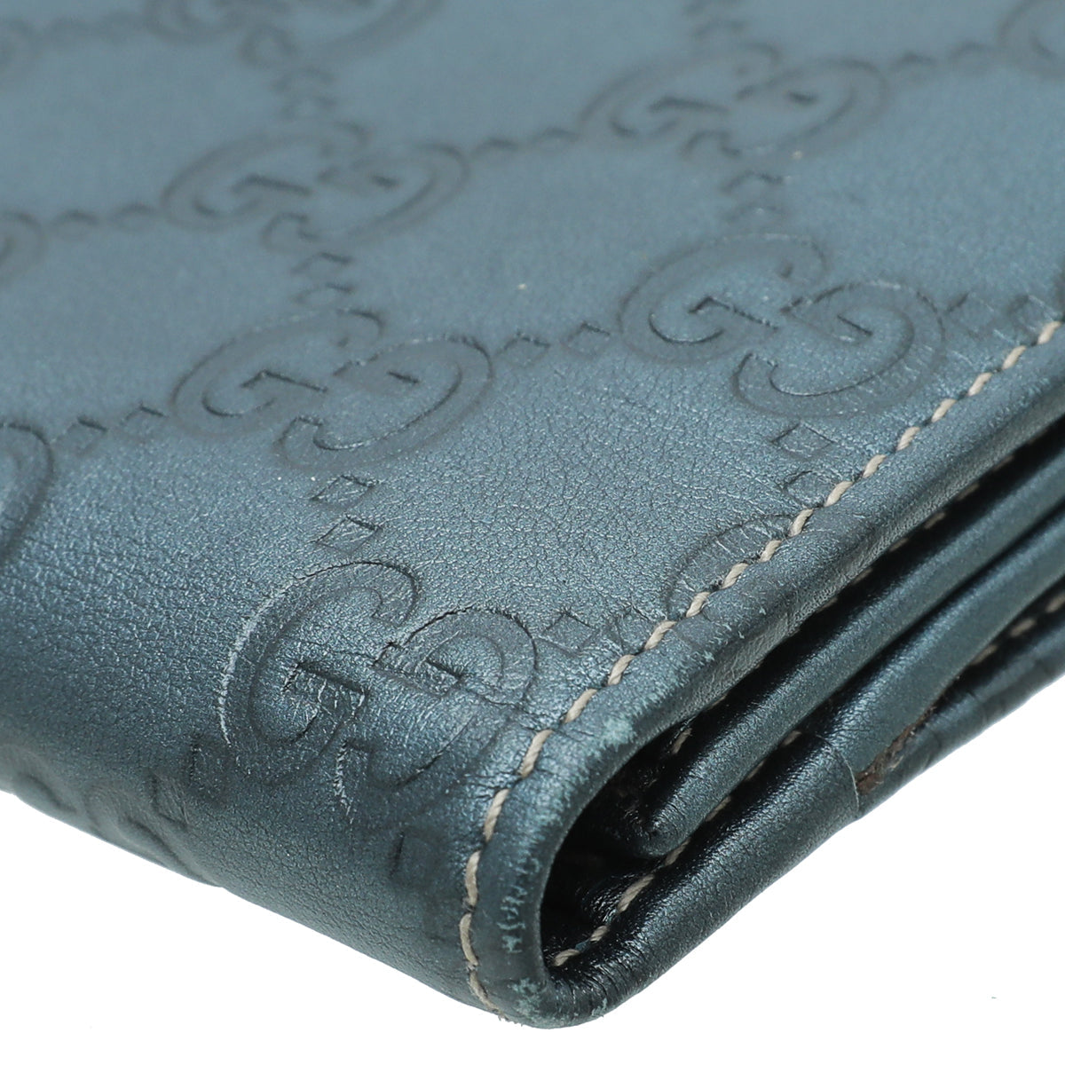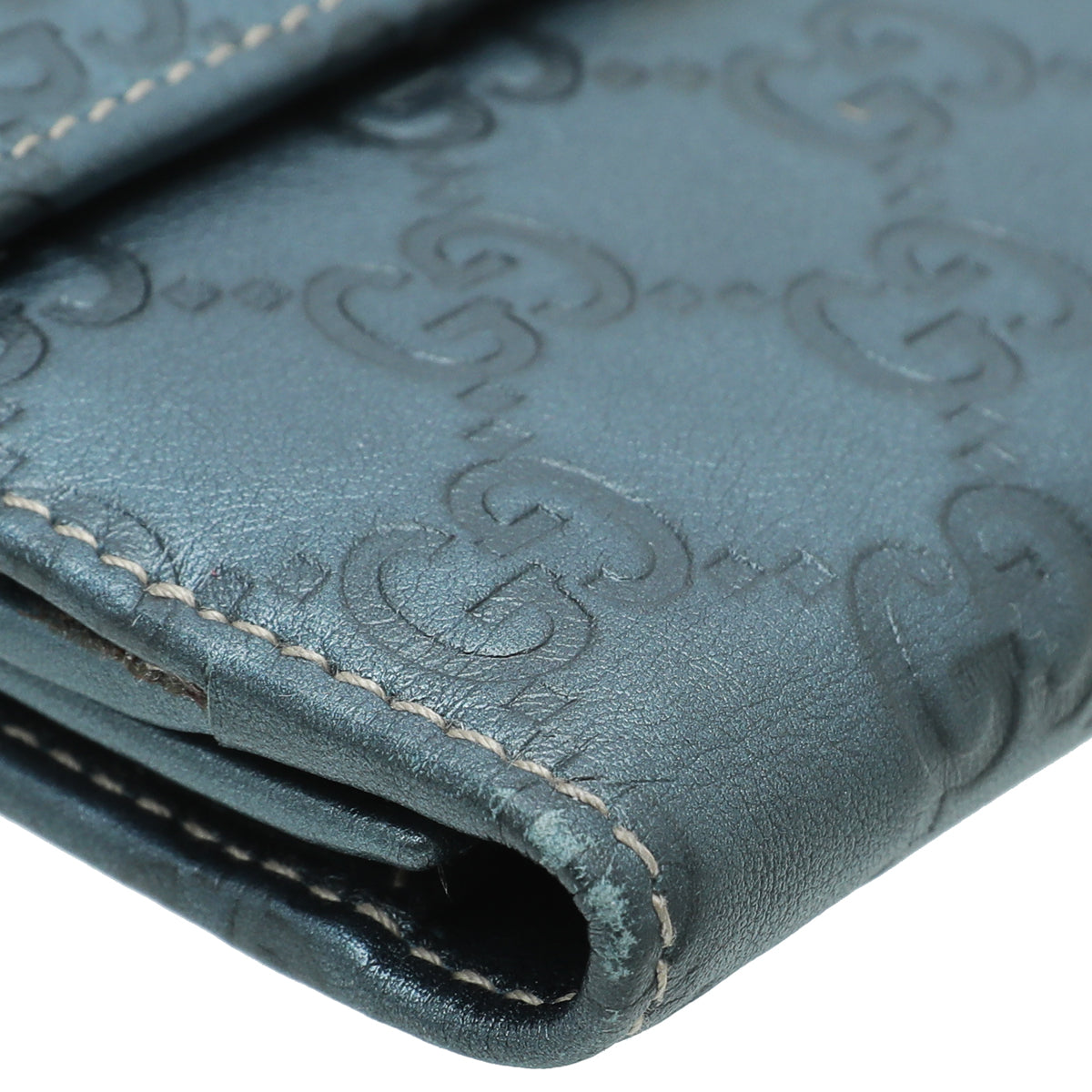 Gucci Metallic Slate Blue Guccissima Metal Bar Continental Wallet