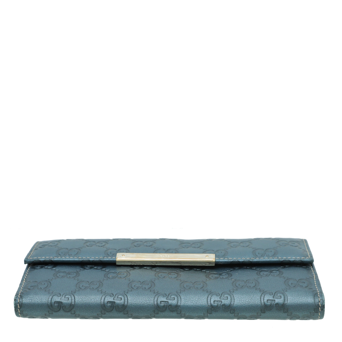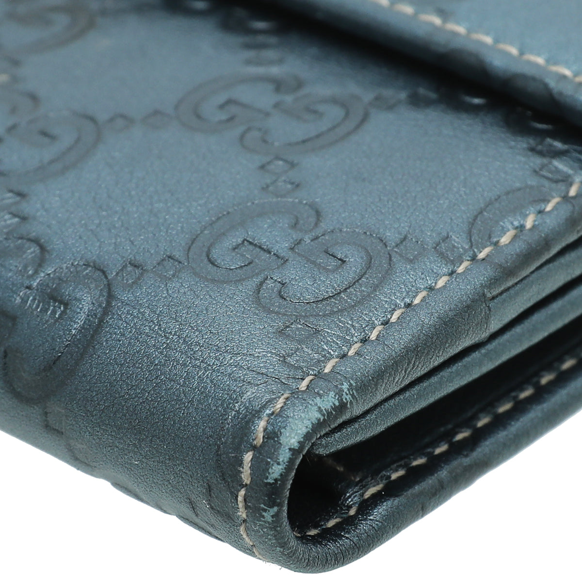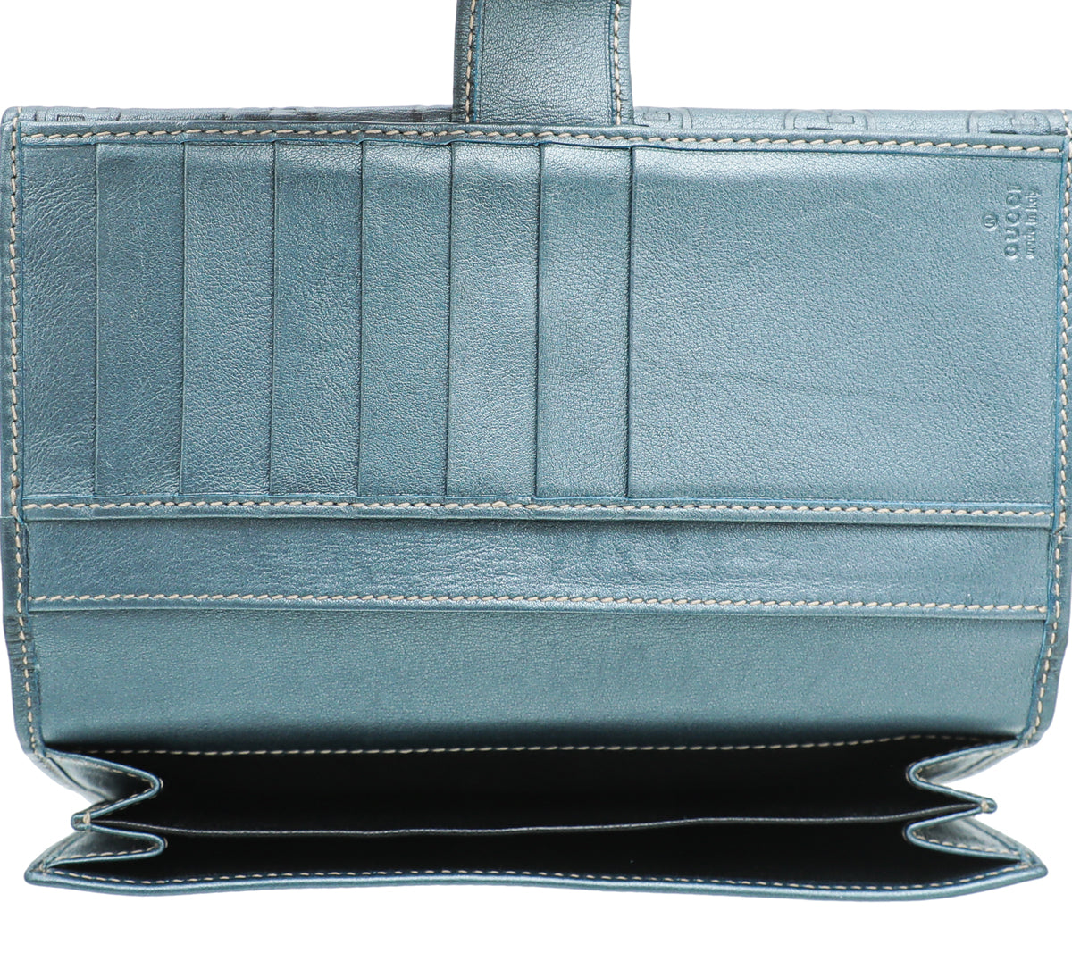 Gucci Metallic Slate Blue Guccissima Metal Bar Continental Wallet