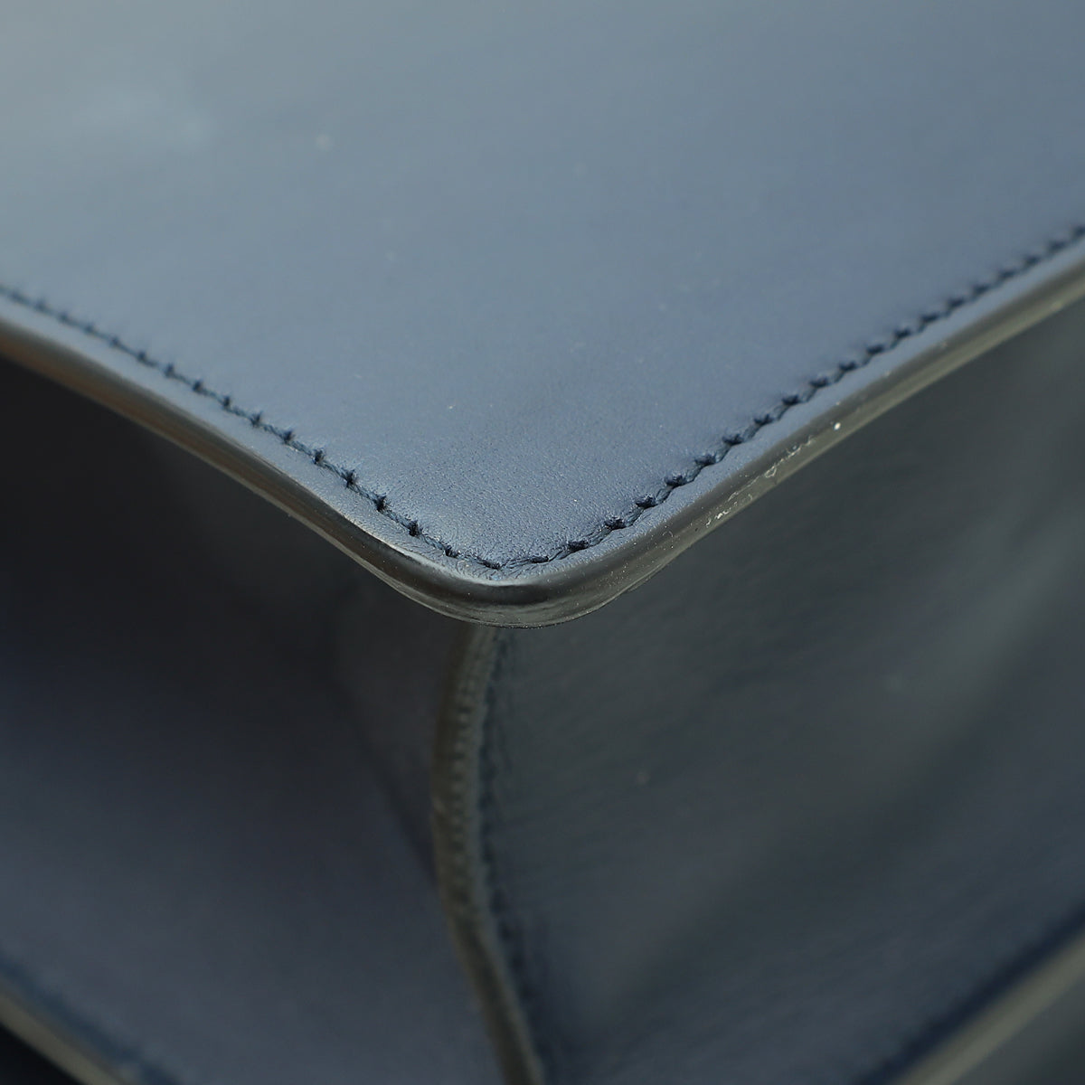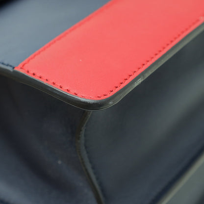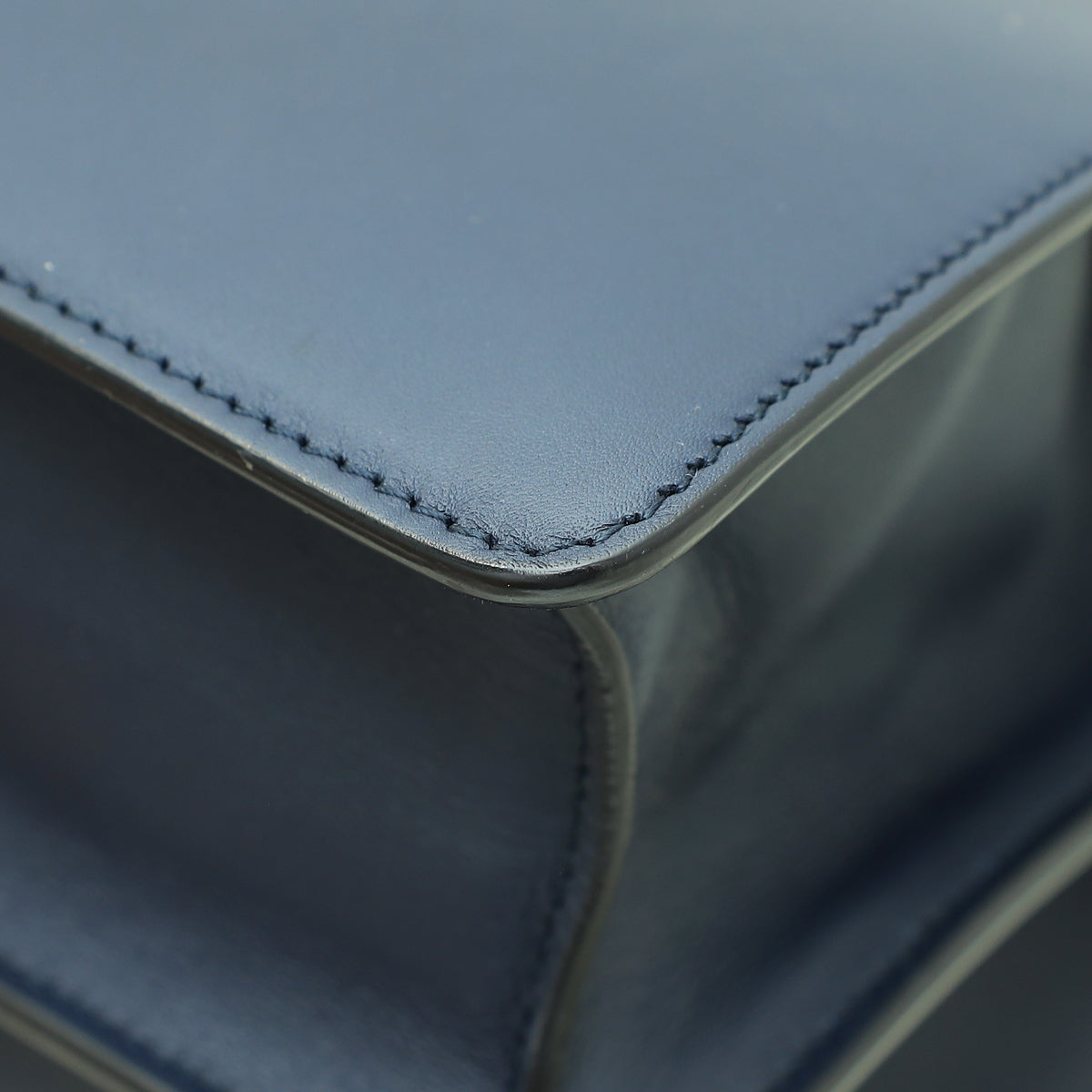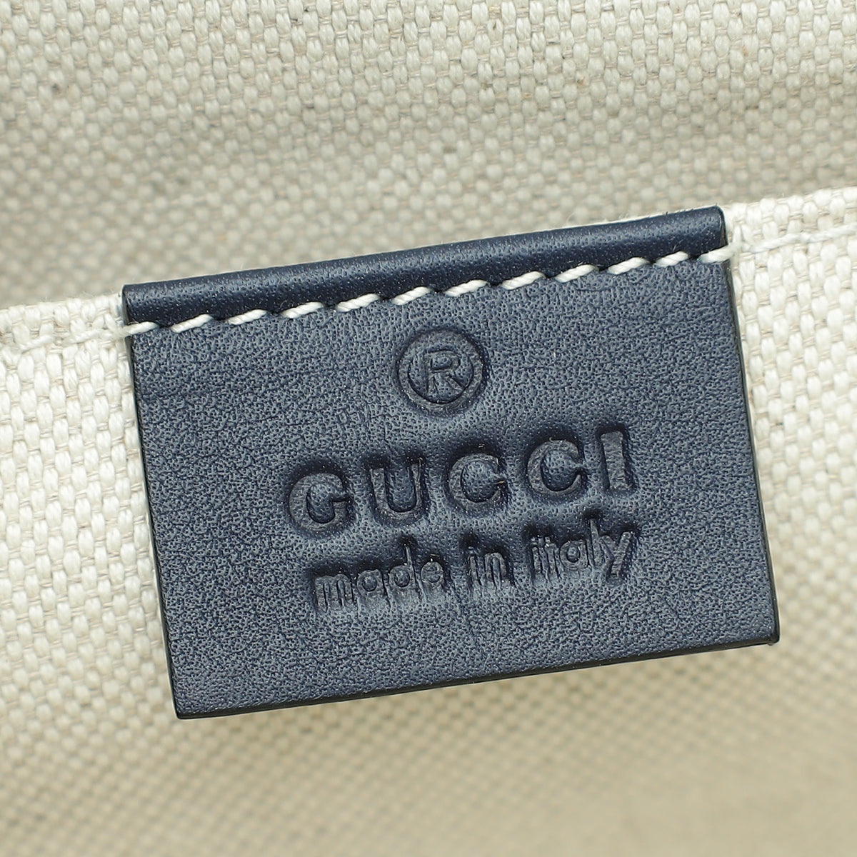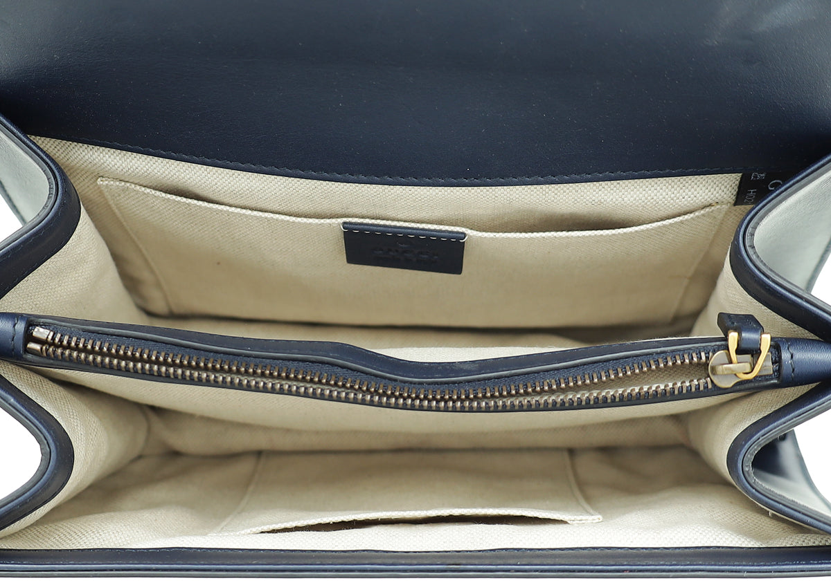 - Material: Navy Blue Smooth Calfskin Leather with Green/Red Striped Leather Trim, Bamboo Handle, Navy Blue/Red Web Strap and Tiger Head Closure