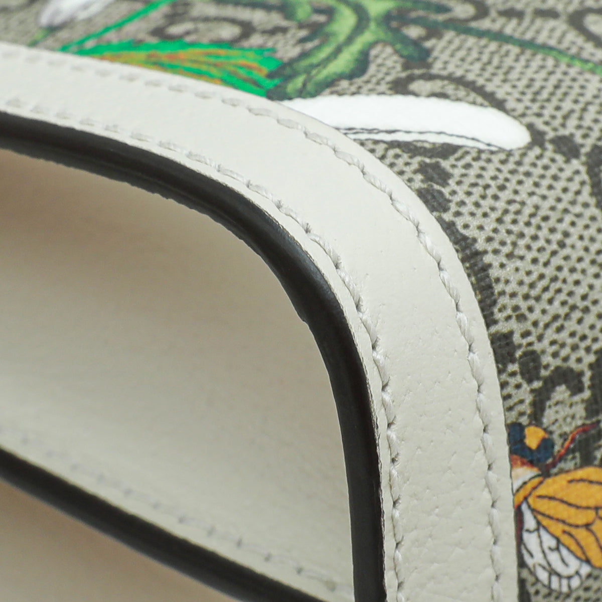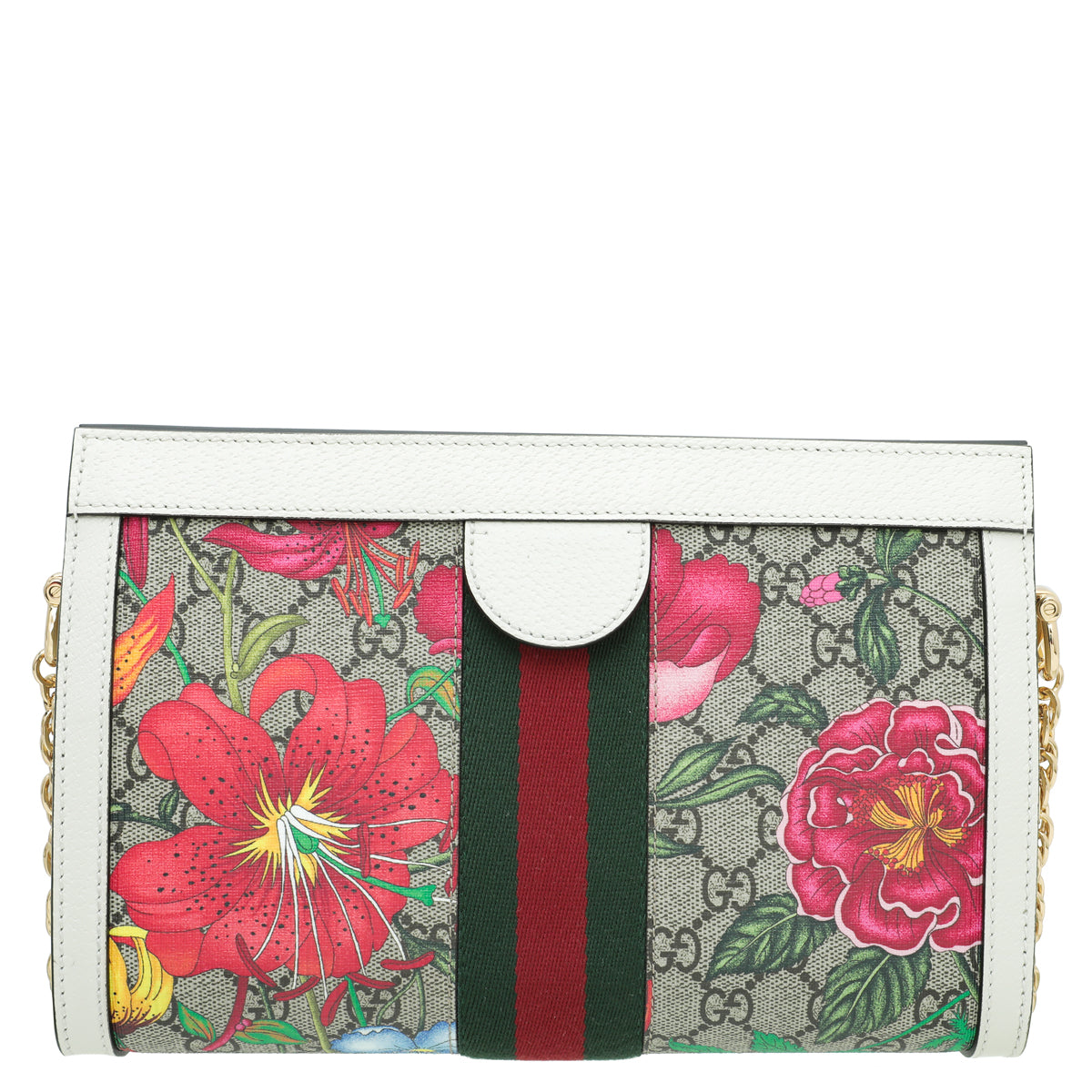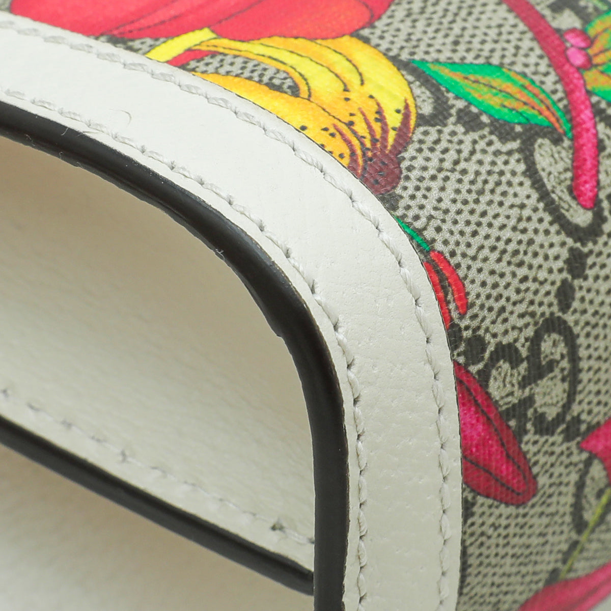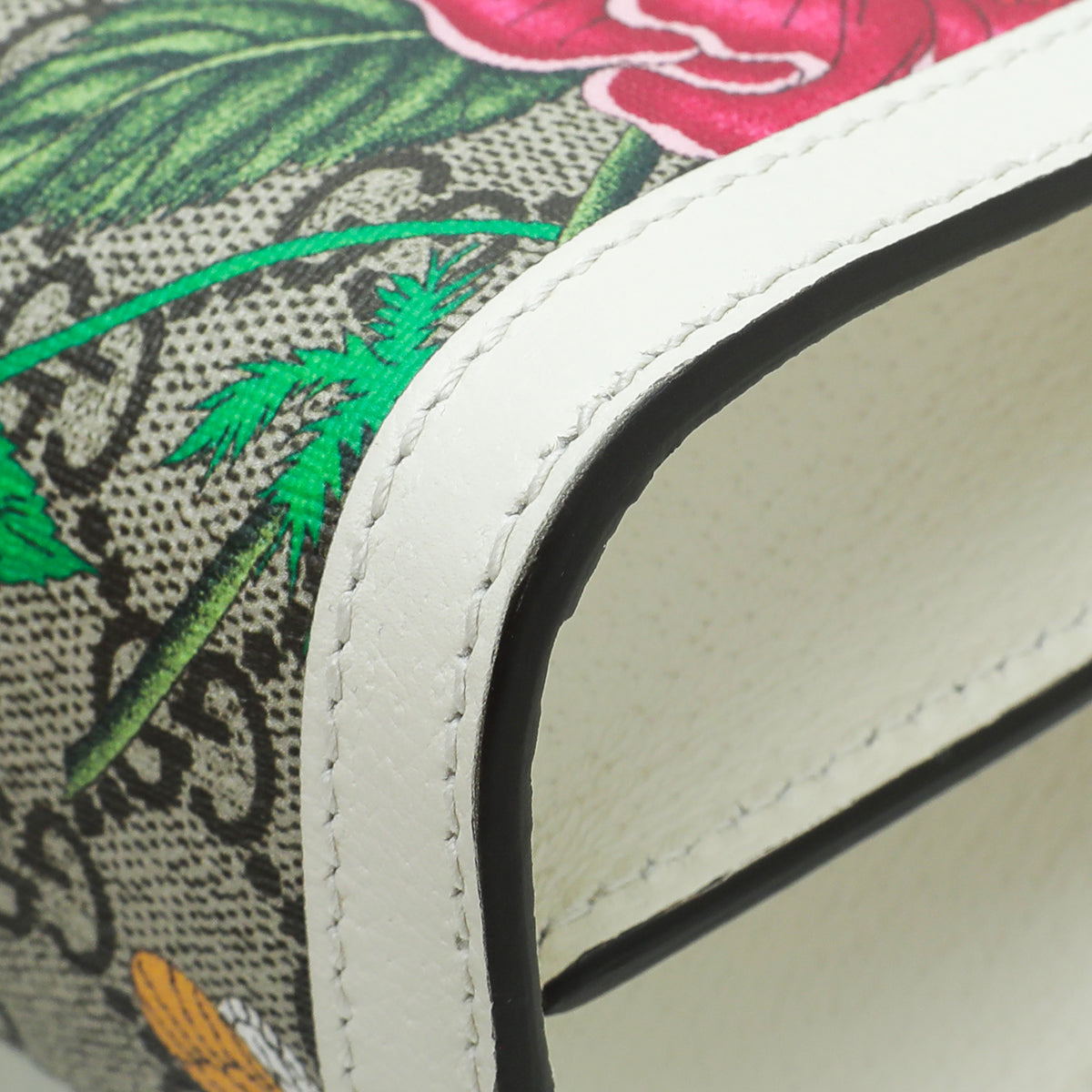 - Material: Ebony GG Coated Canvas with Multicolor Flora and Green/Red Web and White Leather Trim