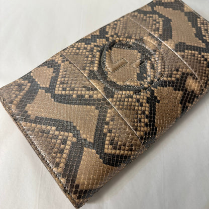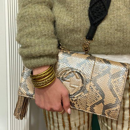 Très belle pochette en python de la marque Gucci, avec son petit pompon, une pièce élégante pour sortir.