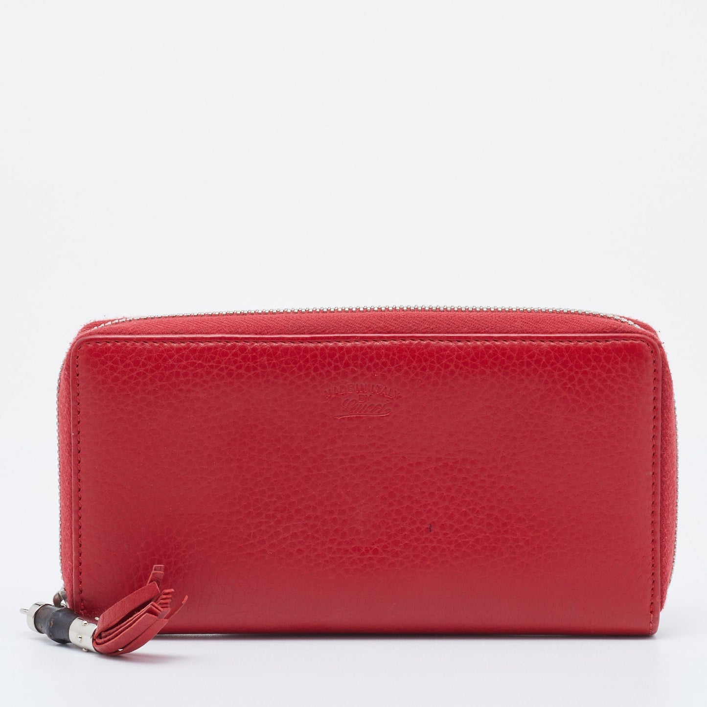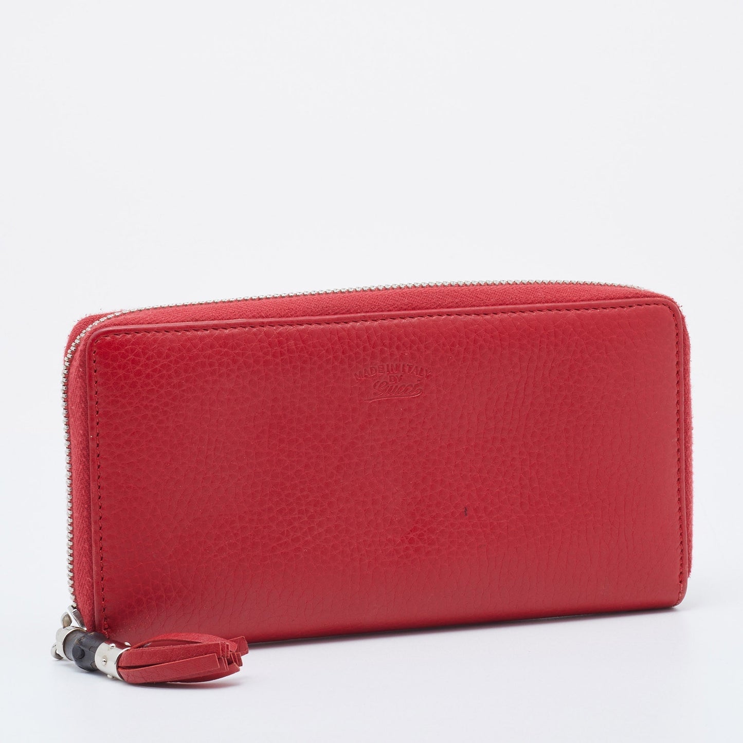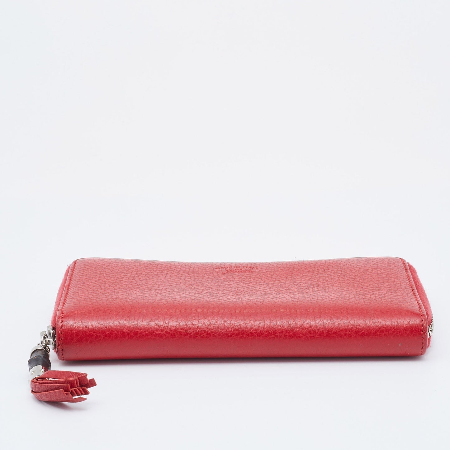 Gucci Red Leather Bamboo Tassel Zip Around Wallet