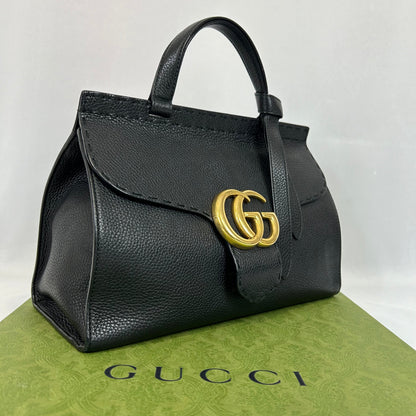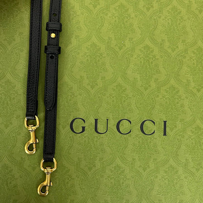 Le sac Gucci Marmont en cuir grainé noir est un accessoire de luxe distinctif. Ce dernier est doté d'une bandoulière en cuir noir, ajustable et amovible. L'intérieur est spacieux et bien organisé. Ce sac est à la fois élégant et fonctionnel, ajoutant une touche sophistiquée à toute tenue.