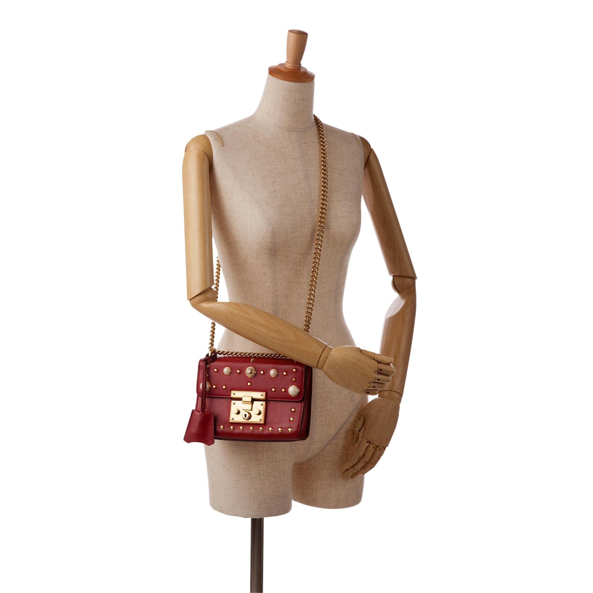 Gucci Small Leather Pearl Studded Padlock Crossbody Bag (SHG-lpKTdk)
