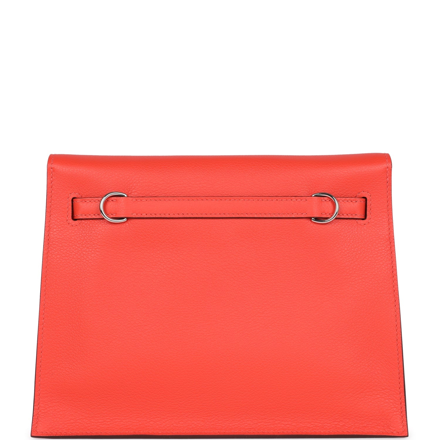 This Kelly Danse II is in Orange Field evercolor leather with palladium hardware and has tonal stitching, two straps with front flap closure and an adjustable flat shoulder strap for multistyle wear.