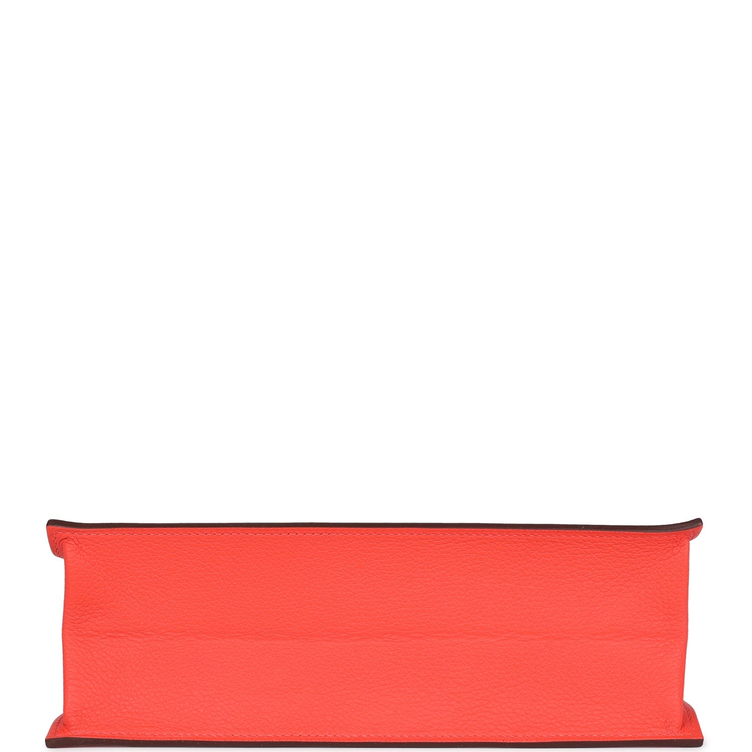The interior is lined with Orange Field lambskin and has a removable Hermes stamped base and an open wall pocket.