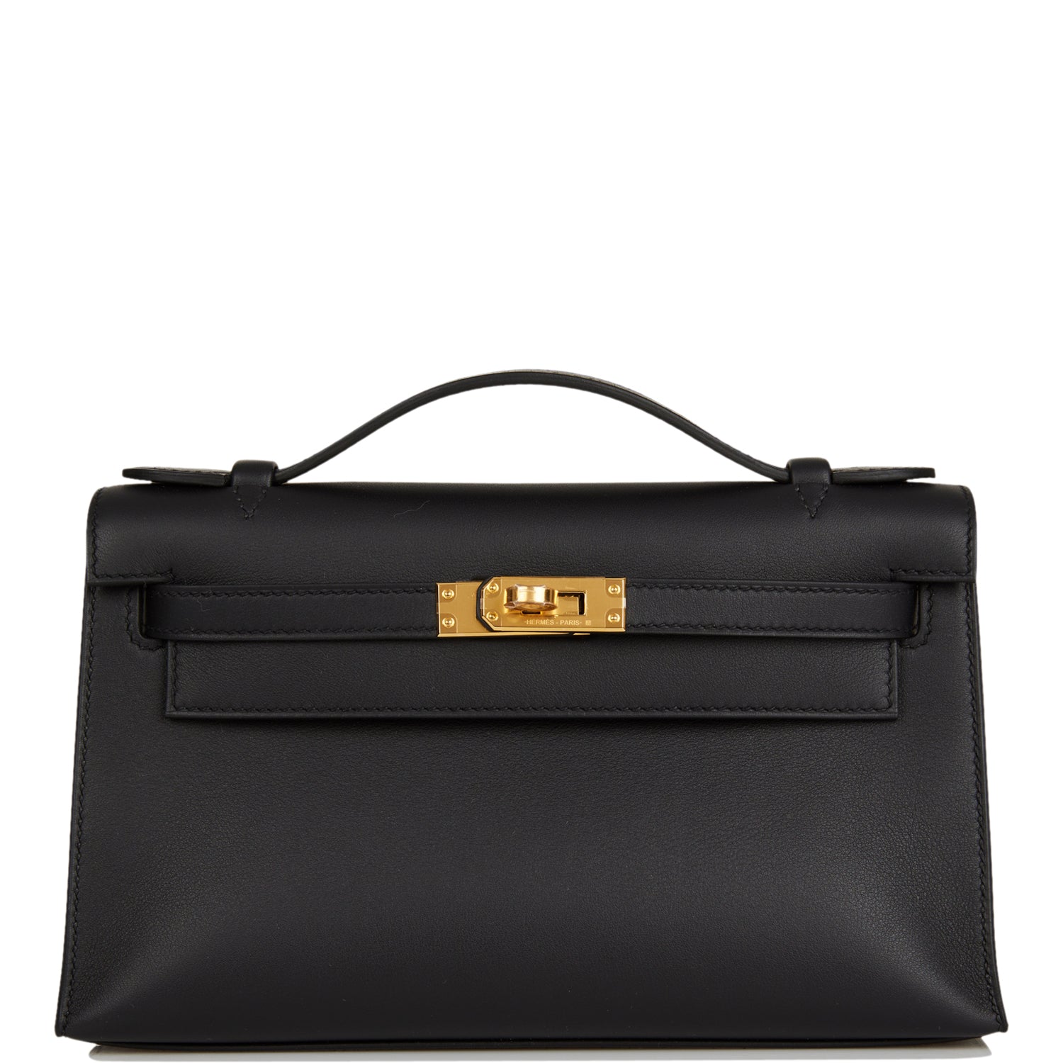 Hermes Kelly Pochette Black Swift Gold Hardware