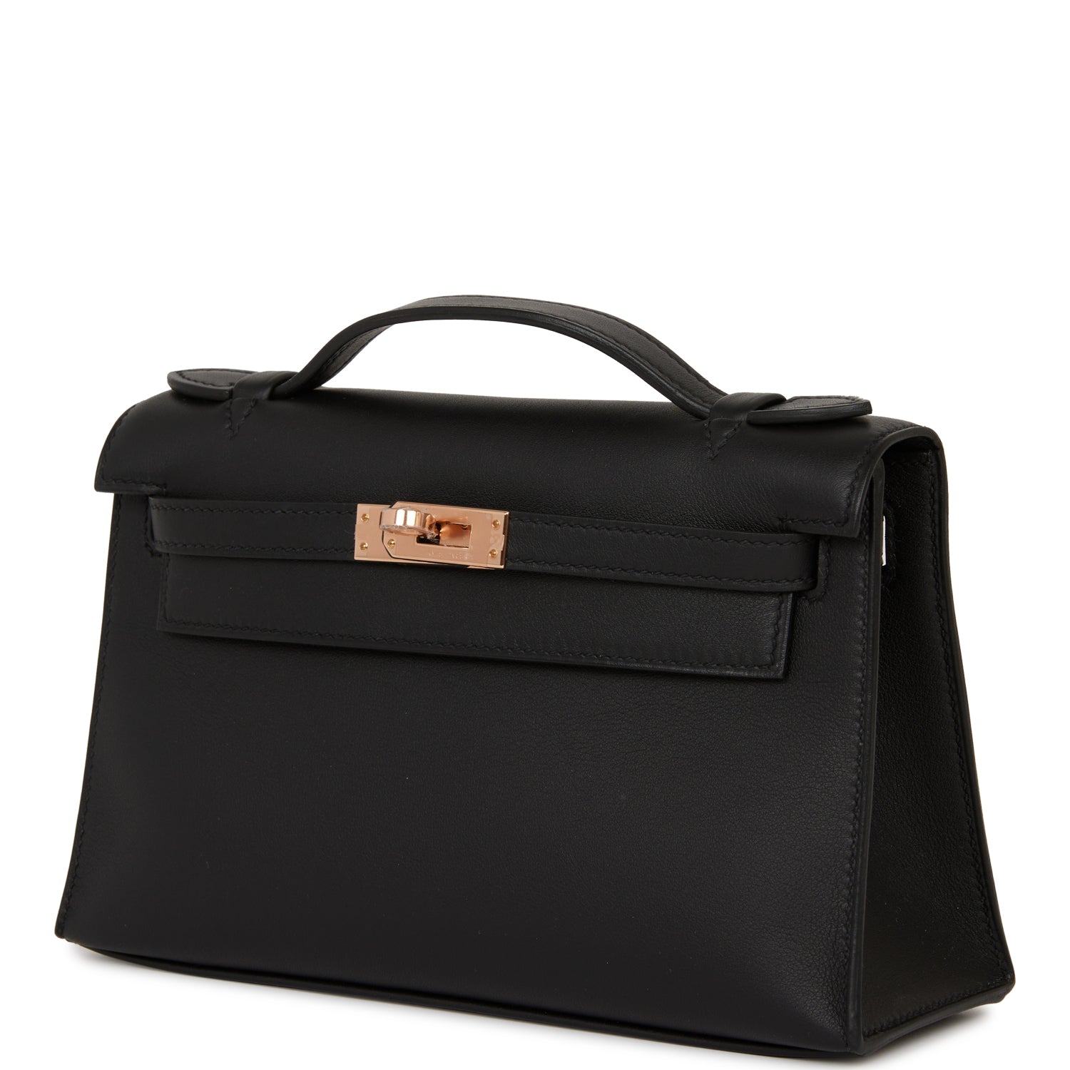 Hermes Kelly Pochette Black Swift Rose Gold Hardware