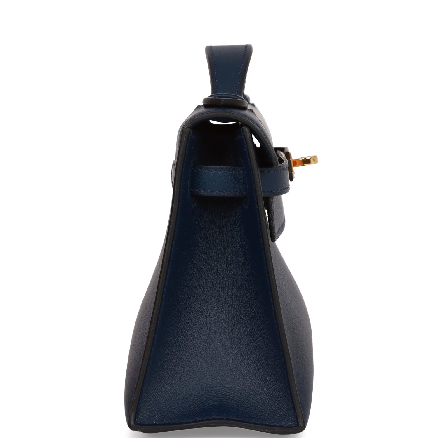 Hermes Kelly Pochette Bleu Navy Swift Gold Hardware