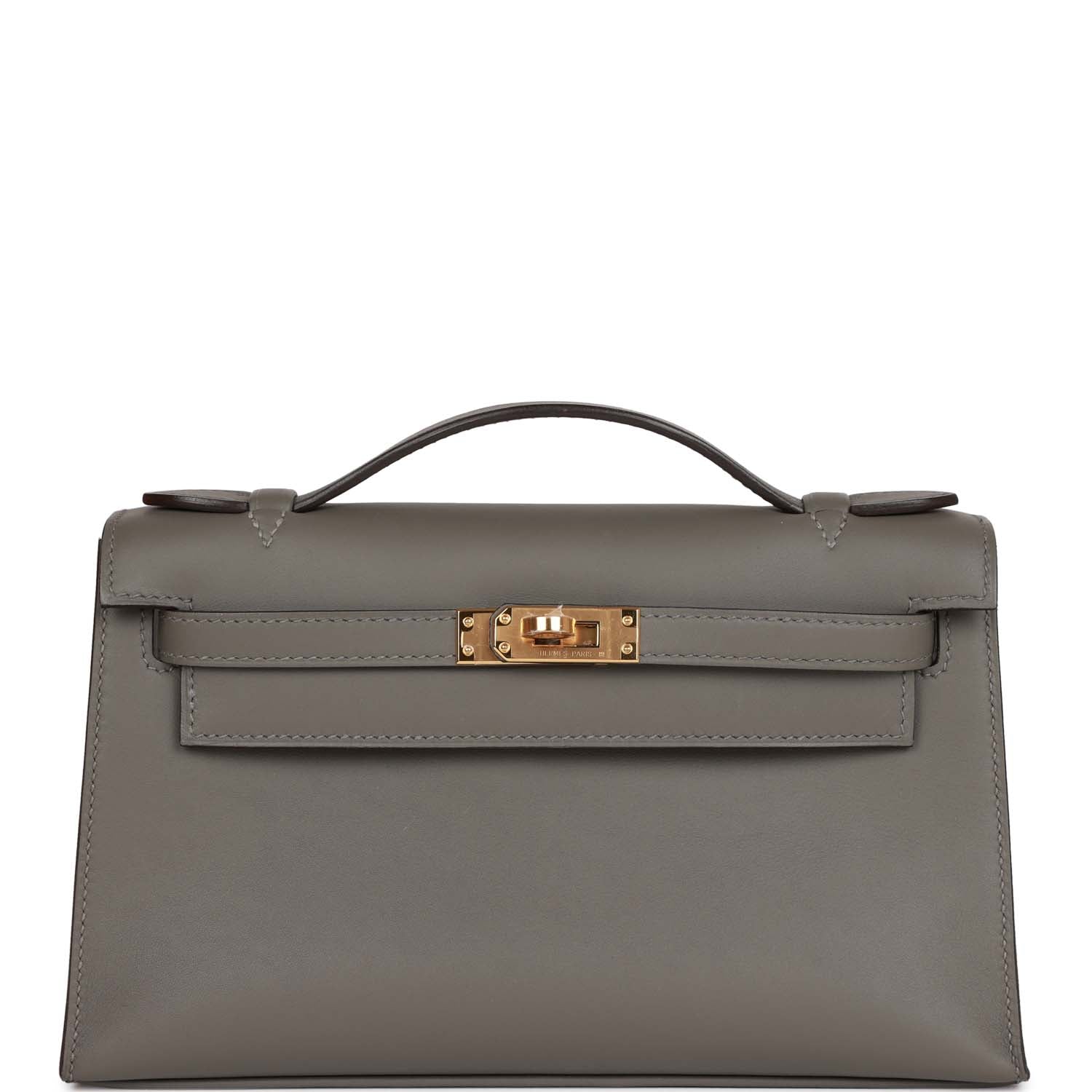 Hermes Kelly Pochette Gris Meyer Swift Gold Hardware
