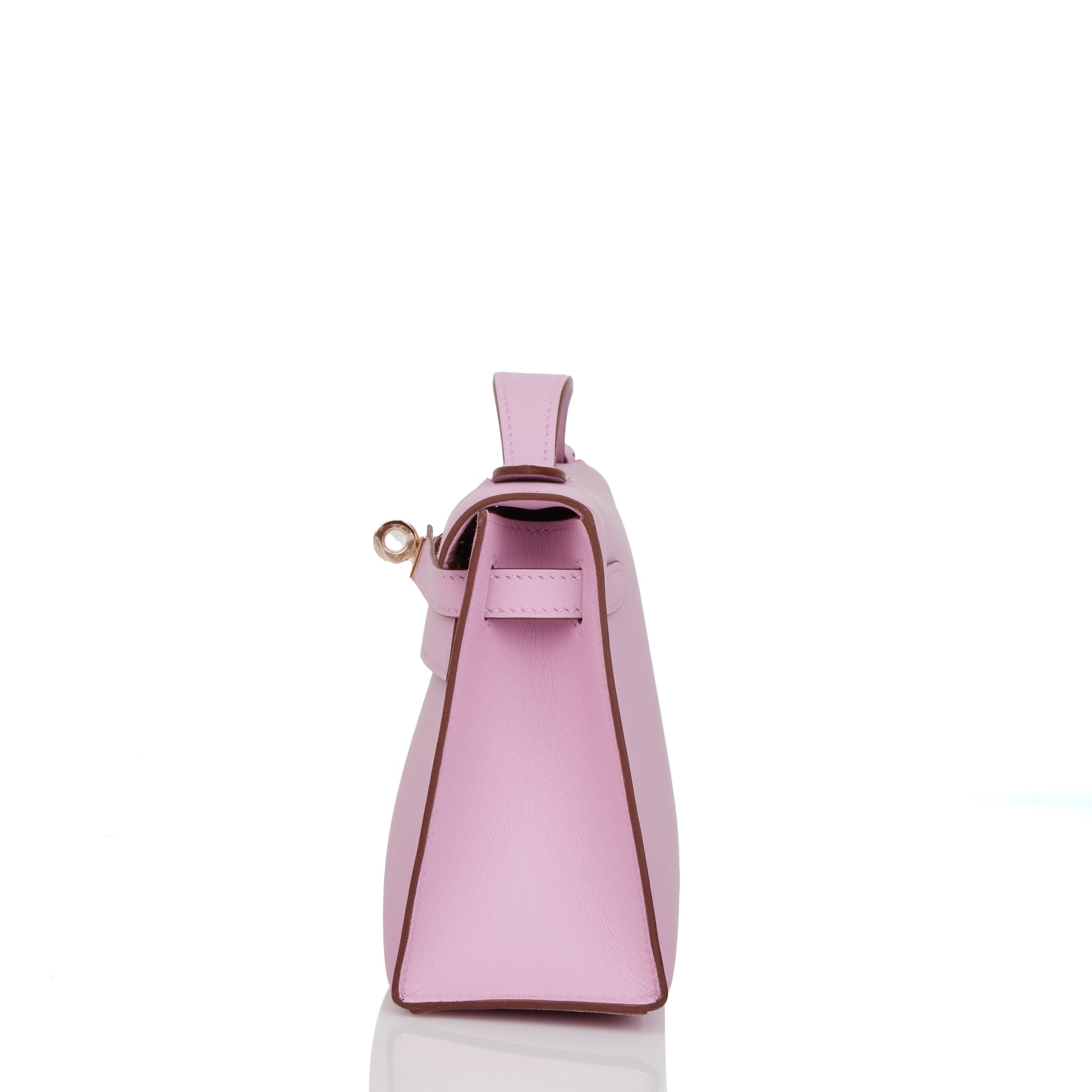 Hermes Kelly Pochette Mauve Sylvestre Swift Rose Gold Hardware