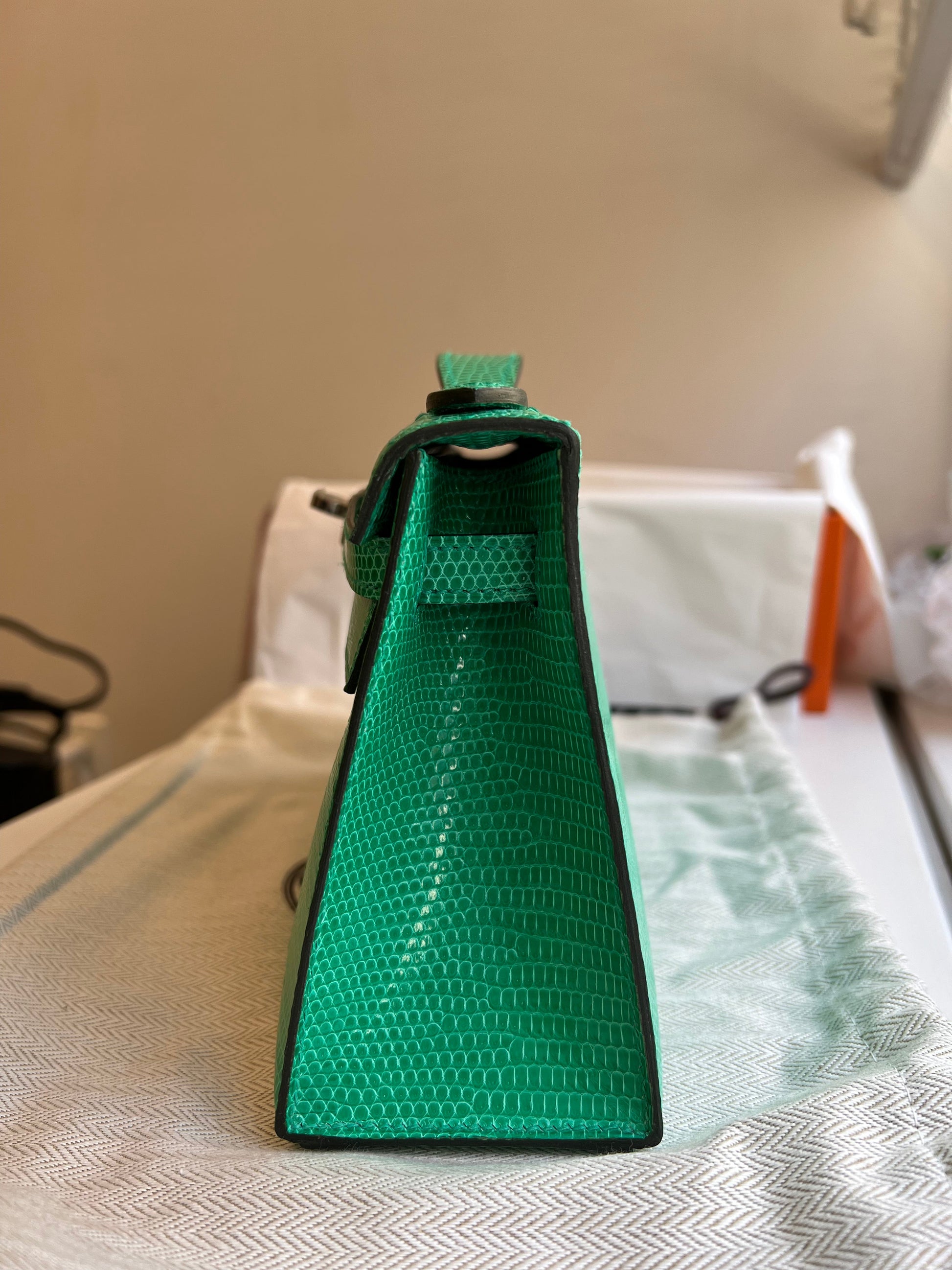 Hermes Kelly Pochette Menthe Lizard Palladium Hardware