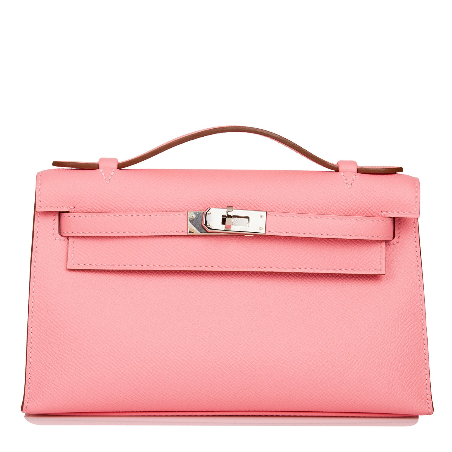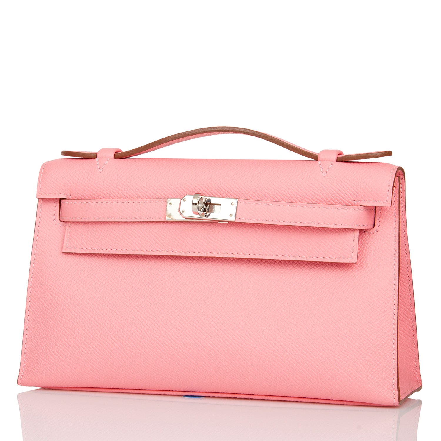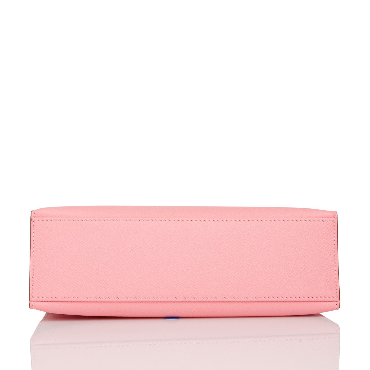 Hermes Kelly Pochette Rose Confetti Epsom Palladium Hardware