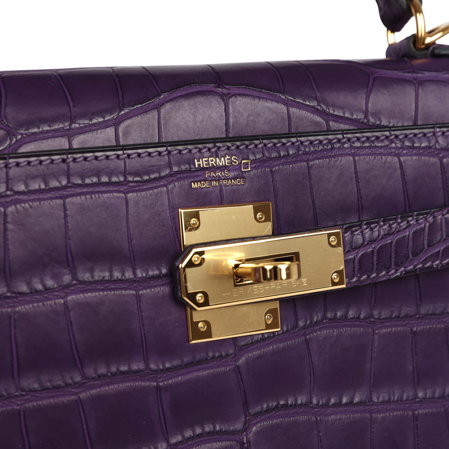 Hermes Kelly Retourne 28 Amethyst Matte Alligator Gold Hardware