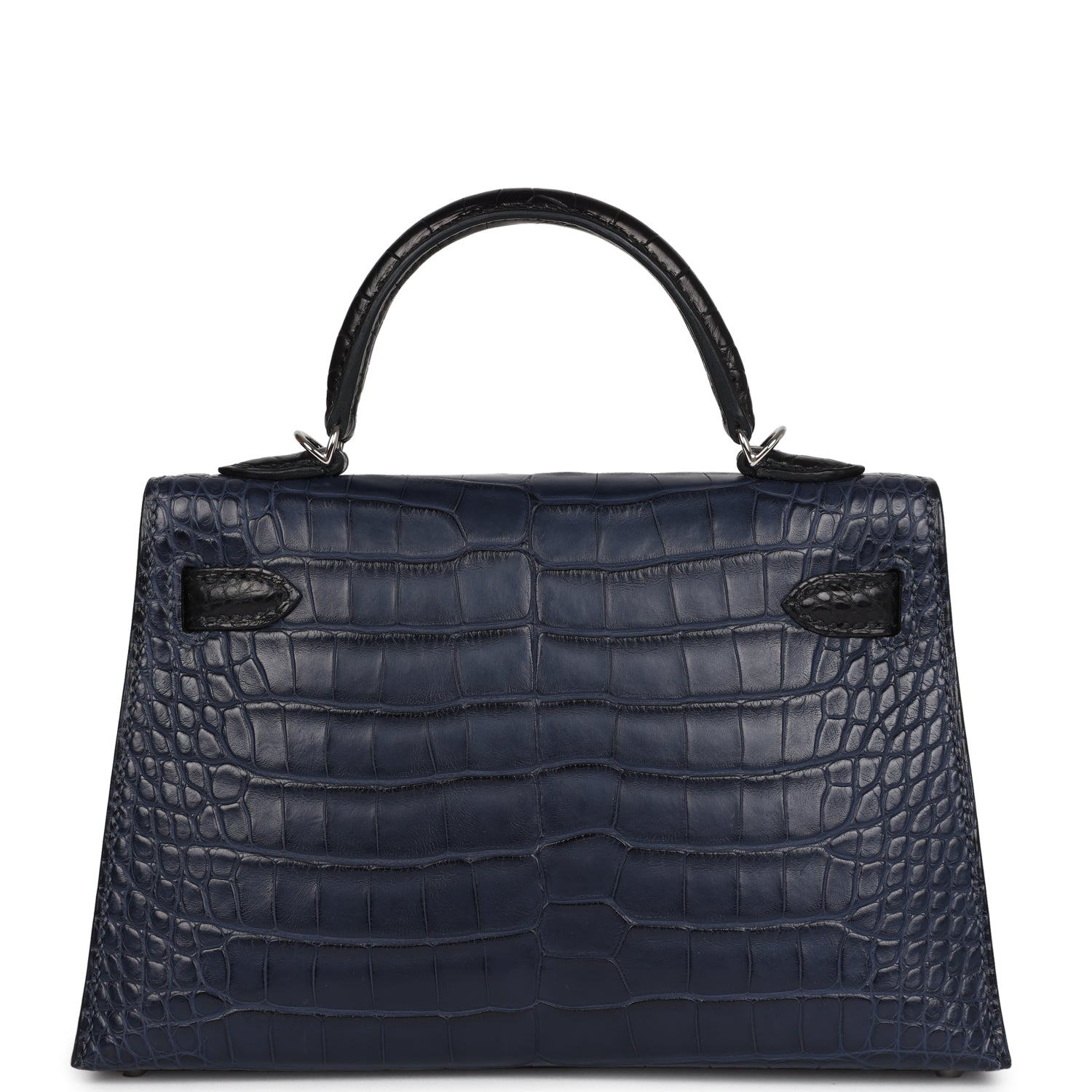 Hermes Special Order (HSS) Kelly Sellier 20 Bleu Indigo and Black Matte Alligator Palladium Hardware