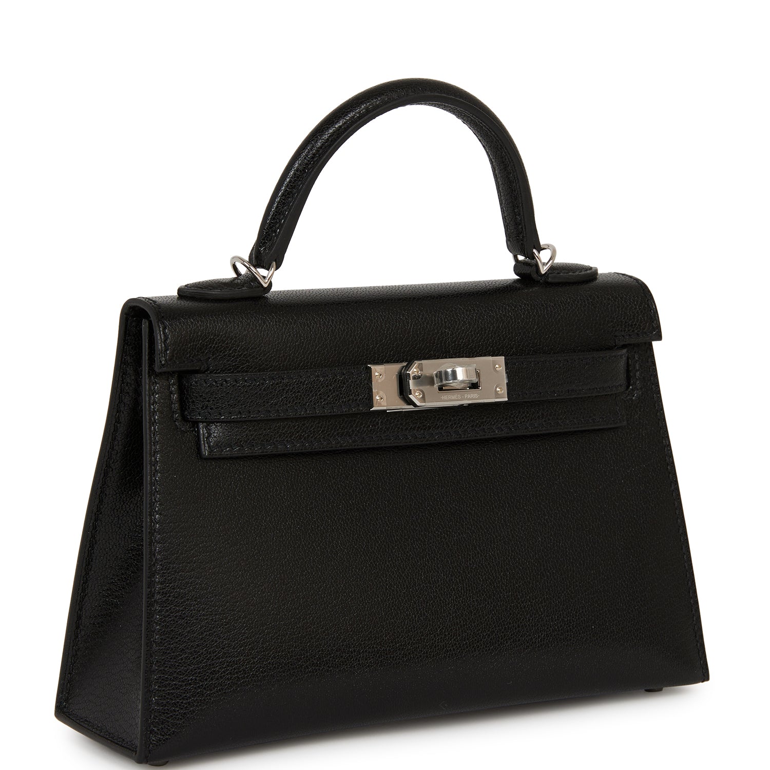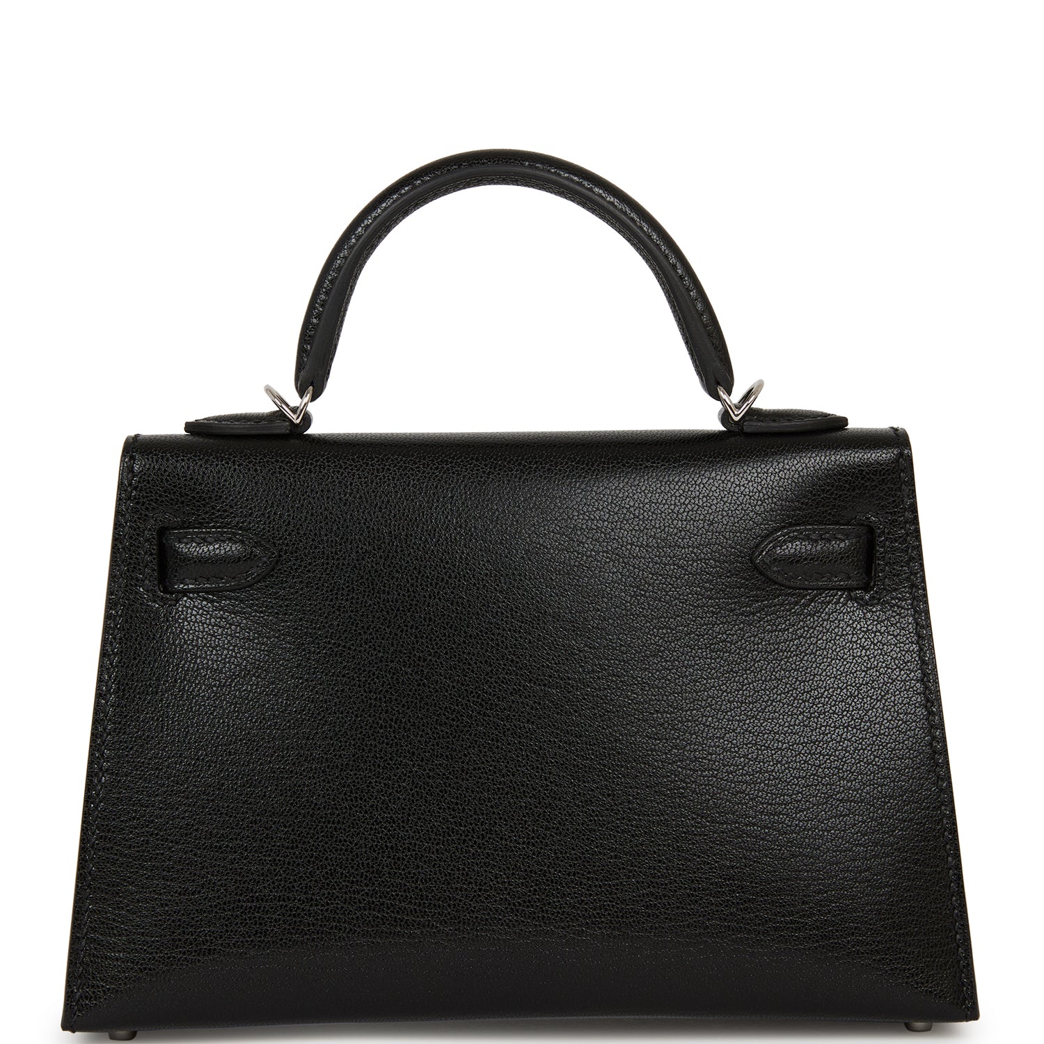 Hermes Kelly 20 Sellier Black Chevre Chamkila Palladium Hardware