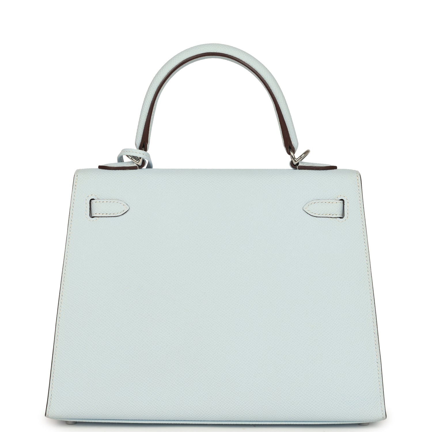 Pre-owned Hermes Kelly Sellier 25 Bleu Brume Epsom Palladium Hardware