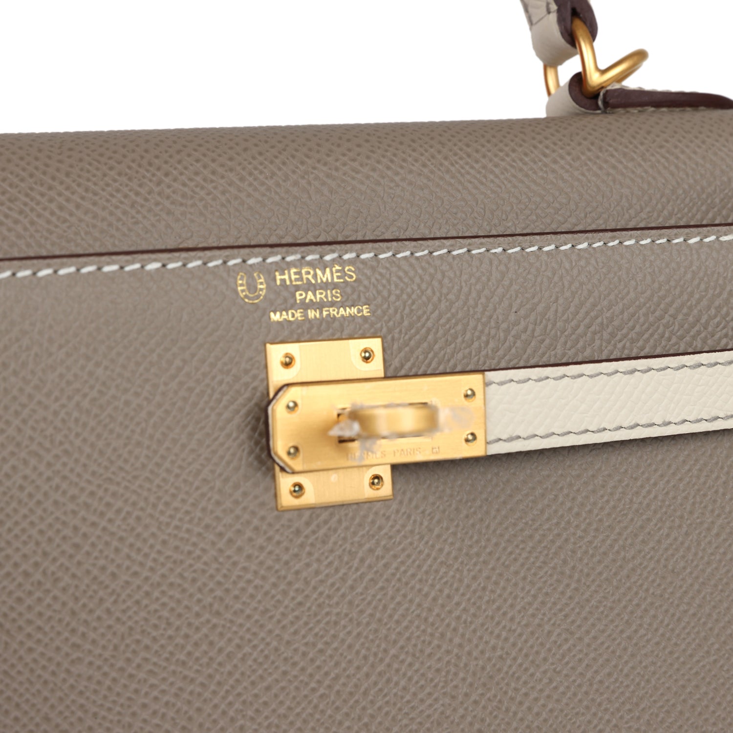 Hermes Special Order (HSS) Kelly Sellier 25 Etoupe and Craie Epsom Brushed Gold Hardware