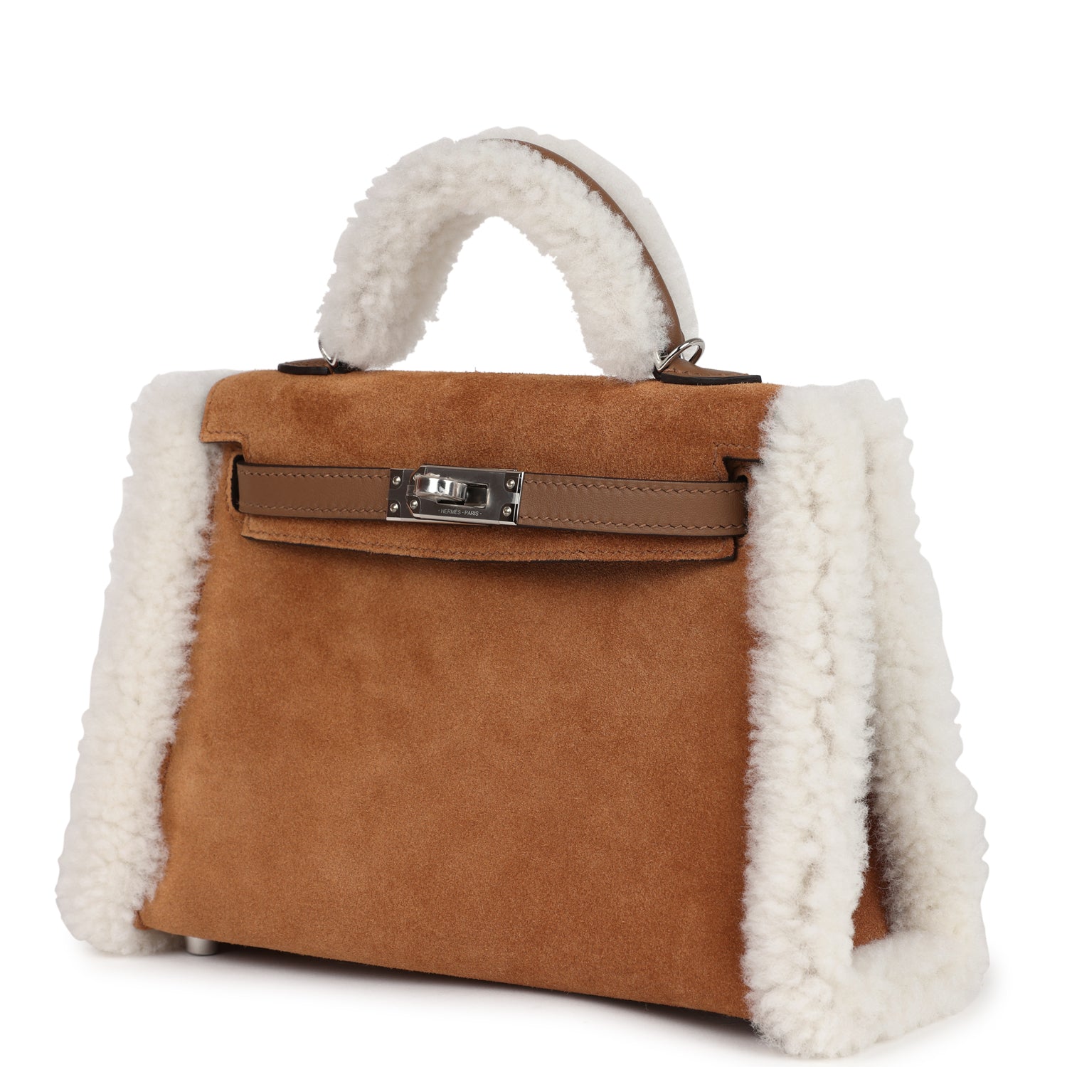 Hermes Teddy Kelly 20 Chamois Shearling and Swift Palladium Hardware