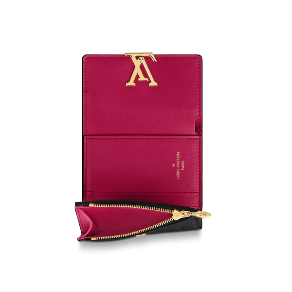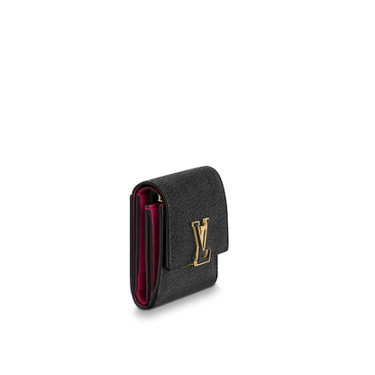 Crafted in supple Taurillon leather, the Capucines Compact Wallet has many functionalities and a large capacity to fit everyday essentials. The ingenious and original structure of this elegant pocket-sized wallet made of 2 fold-over flaps gives you ample space for credits, coins and bills.