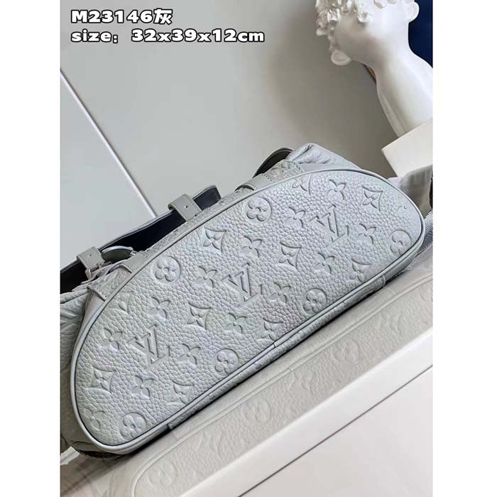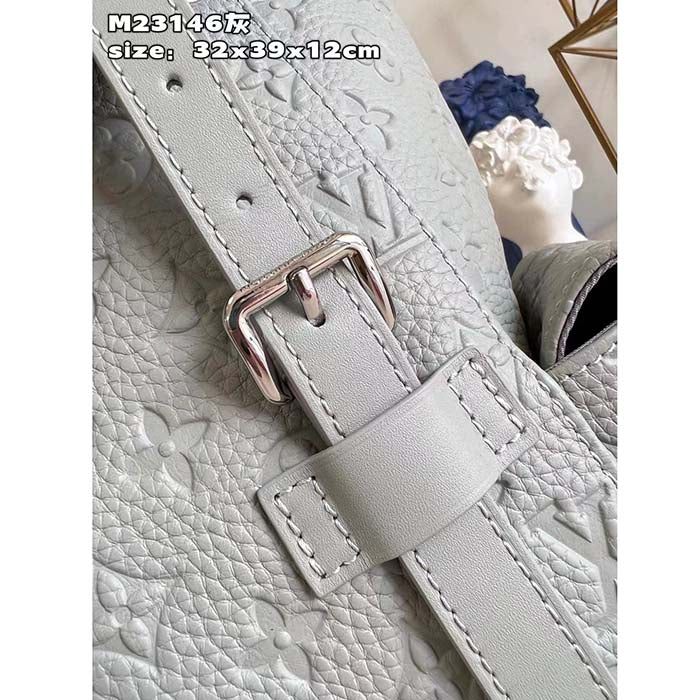 Louis Vuitton LV Unisex Christopher MM Backpack Mineral Gray Embossed Taurillon Monogram Cowhide Leather