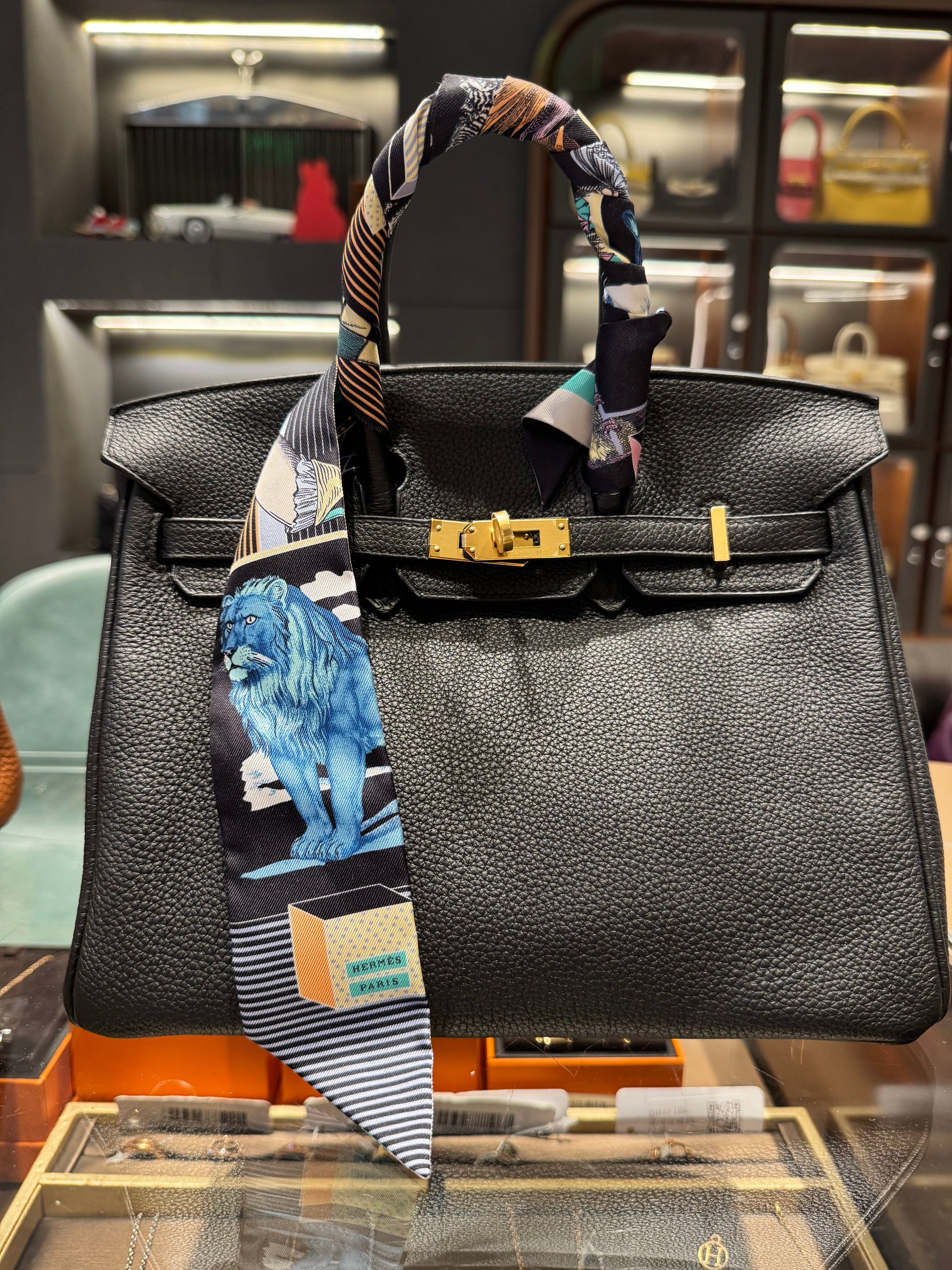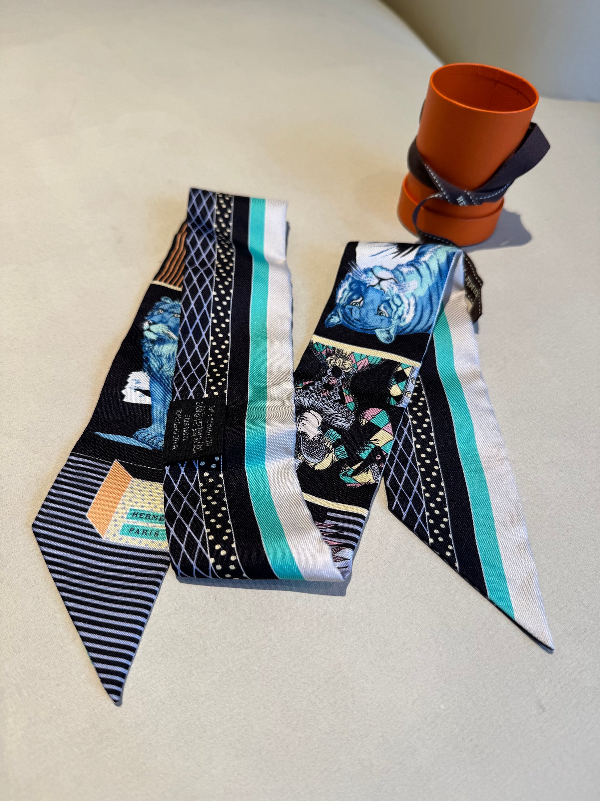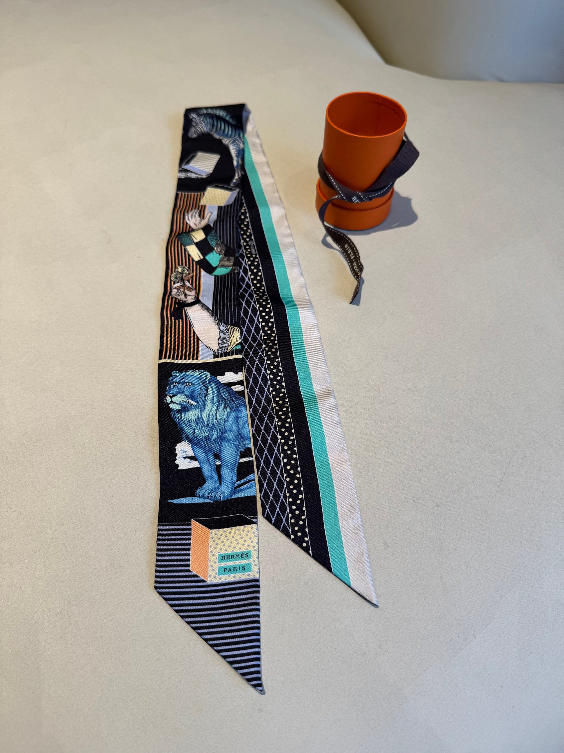 Not Used Hermes Silk Twilly "Grand Theatre", w/ box
